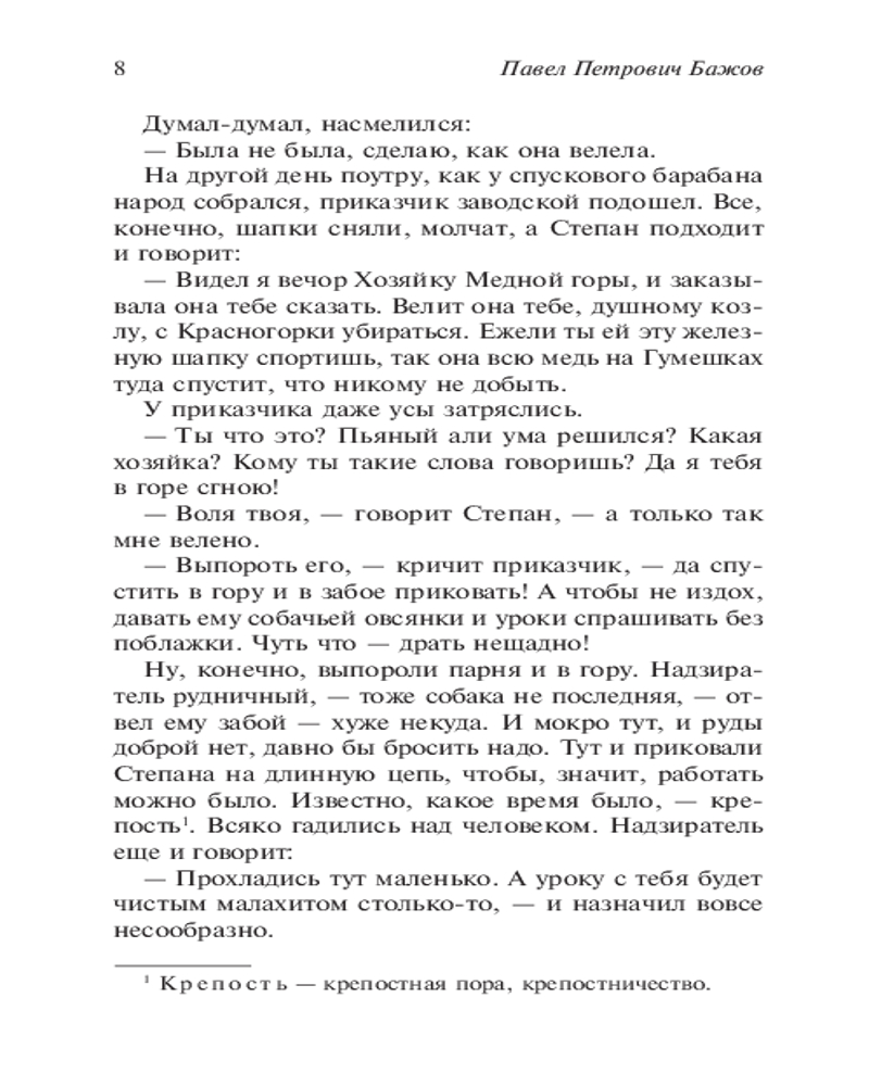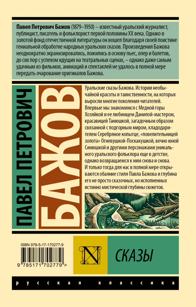 💳 Оплатить за товар можно при получении 🇰🇿 Есть бесплатная доставка по Казахстану от 1 дня 🎁 Копите бонусы с каждой покупки Серия: Эксклюзив: Русская классика Уральские сказы Бажова. Истории необычайной красоты и таинственности, на которых выросли многие поколения читателей. Впервые мы знакомимся с Медной горы Хозяйкой и ее любимцем Данилой-мастером, красавицей Танюшкой, загадочным образом связанной с подгорным миром, кладодарителем Серебряное копытце, «повелительницей золота» Огневушкой-Поскакушкой, вечно юной Синюшкой и другими персонажами уникального уральского фольклора еще в детстве, однако возвращаемся к ним снова и снова. И только тогда для нас в полной мере открываются обаяние стиля Павла Бажова и глубина его не просто сказочных, но исполненных истинно мистической глубины сюжетов.а |