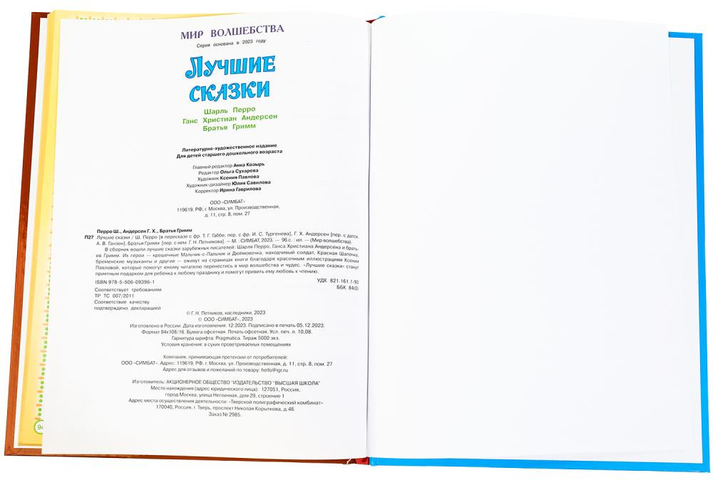 💳 Оплатить за товар можно при получении 🇰🇿 Есть бесплатная доставка по Казахстану от 1 дня 🎁 Копите бонусы с каждой покупки Серия: Мир волшебства Книга «Ш. Перро, Г. Х. Андерсен, братья Гримм. Лучшие сказки» из серии «Мир волшебства» ТМ «УМка» — отличный подарок для ребёнка. В этой книге вы найдёте сказки известных зарубежных писателей, чьи произведения популярны и любимы во всём мире. Красочное художественное оформление дополнит повествование и сделает процесс чтения ещё более интересным и увлекательным занятием. Рекомендовано детям младшего дошкольного возраста. |
