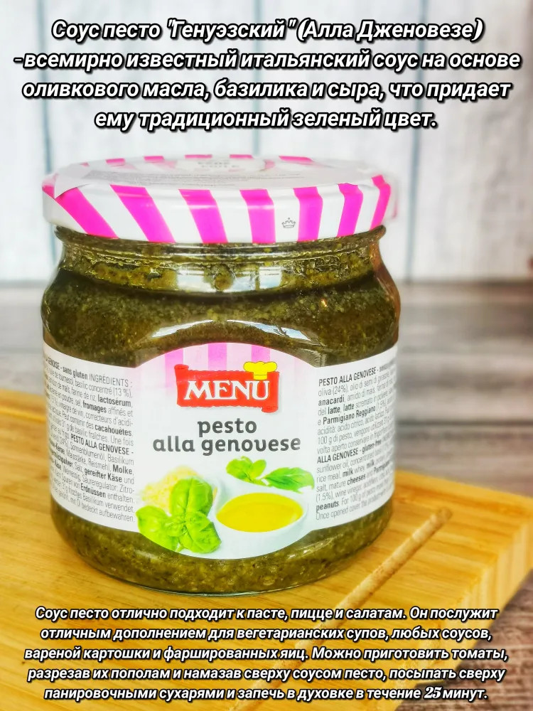 Menù Соус песто генуэзский «Pesto Alla Genovese»В данный момент этот товар отсутствует в продаже. Возможно, у нас найдется аналогичный или похожий товар здесь. Соус песто «Генуэзский» (Алла Дженовезе)- всемирно известный итальянский соус на основе оливкового масла, базилика и сыра, что придает ему традиционный зеленый цвет. Песто великолепен в пасте, пицце, салатах, супах и лазанье, с крекерами или хлебом. |