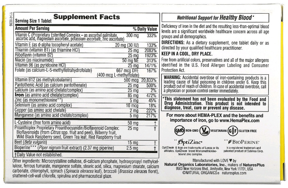 NaturesPlus Таблетки медленного высвобождения «Hema plex»