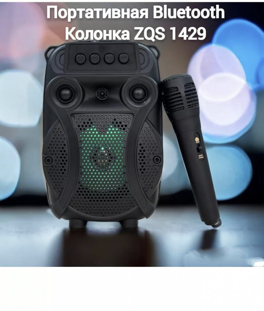 Колонка портативная ZQS 1429В данный момент этот товар отсутствует в продаже. Возможно, у нас найдется аналогичный или похожий товар здесь. Беспроводная колонка с микрофоном ZQS 1429 — это идеальный выбор для всех, кто любит музыку и хочет проводить веселые вечера с друзьями. Беспроводная блютуз (bluetooth) колонка не только позволяет наслаждаться качественным звуком, но и имеет встроенный микрофон, что делает ее идеальным решением для караоке или проведения презентаций и публичных выступлений. Колонка беспроводная подходит для вечеринок, праздников,караоке, а так же может быть в качестве подарка. |