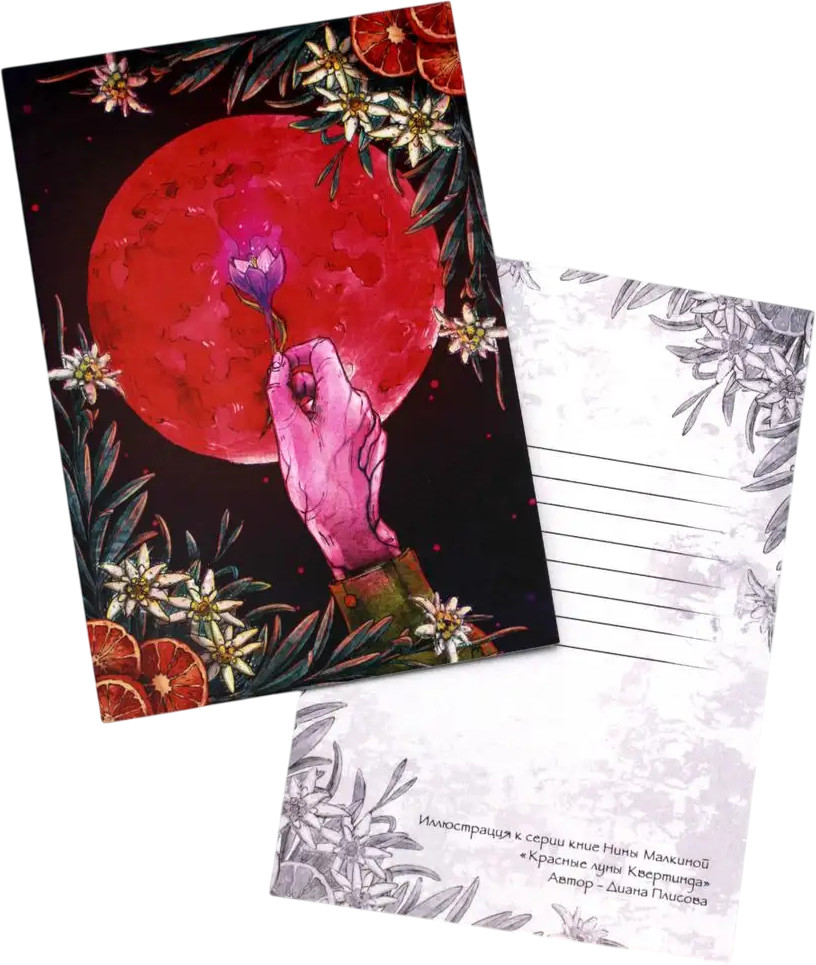 💳 Оплатить за товар можно при получении 🇰🇿 Есть бесплатная доставка по Казахстану от 1 дня 🎁 Копите бонусы с каждой покупки Открытка «Луна и подснежник» с лаком по миру Малкиной Н. Оригинальный мерч по миру современной писательницы Нины Малкиной, автора популярного цикла «Красные луны Квертинда» и не только. |