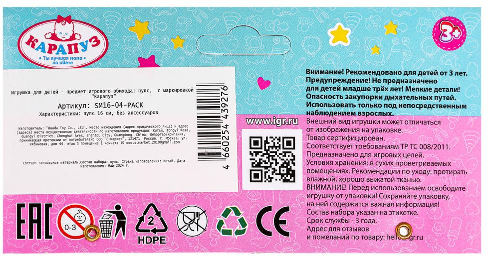 💳 Оплатить за товар можно при получении 🇰🇿 Есть бесплатная доставка по Казахстану от 1 дня 🎁 Копите бонусы с каждой покупки Развивающая кукла-пупс «Мой малыш» ТМ «Карапуз» станет прекрасным подарком для маленькой принцессы. Этот милый пупс с детально проработанным личиком обязательно понравится вашему ребёнку. Пупс одет в розовый комбинезон с красивым принтом в виде кошечки, на голове — повязка в тон. Одежда легко снимается и надевается. Очаровательный малыш непременно вдохновит девочку на множество интересных сюжетов для игр, тем более его можно купать в воде. Игра с пупсом ТМ «Карапуз» учит ребёнка заботиться об окружающих, быть ответственным и внимательным, а также развивает: воображение, память, социально-коммуникативные навыки и моторику. |