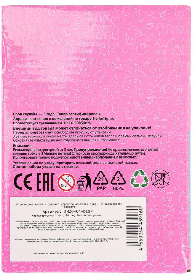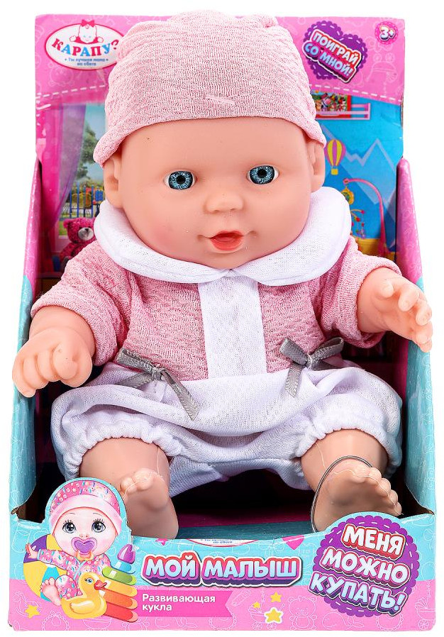 Карапуз Кукла развивающая «Мой малыш»В данный момент этот товар отсутствует в продаже. Возможно, у нас найдется аналогичный или похожий товар здесь. Развивающая кукла-пупс «Мой малыш» ТМ «Карапуз» станет прекрасным подарком для маленькой принцессы. Этот милый пупс с детально проработанным личиком обязательно понравится вашему ребёнку. Куколка одета в бело-розовый костюмчик с воротничком, на голове — шапочка в тон. Одежда легко снимается и надевается. Очаровательный малыш непременно вдохновит девочку на множество интересных сюжетов для игр, тем более его можно купать в воде. Игра с пупсом ТМ «Карапуз» учит ребёнка заботиться об окружающих, быть ответственным и внимательным, а также развивает воображение, память, социально-коммуникативные навыки и моторику. |