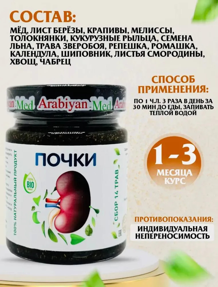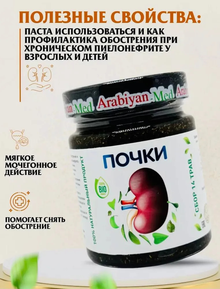 Паста для почек от Arabian Med — это натуральное средство, созданное по древним арабским рецептам для поддержания здоровья почек и мочевыводящей системы. Уникальная формула содержит мед и комплекс ценных растительных ингредиентов, известных своими лечебными свойствами: