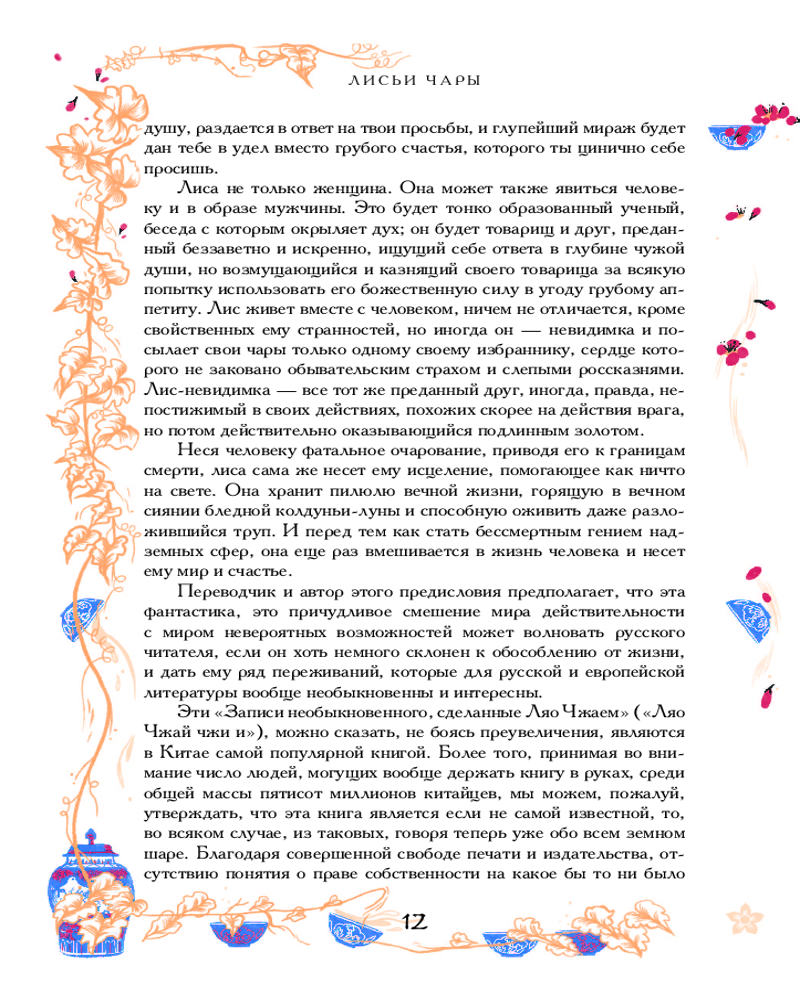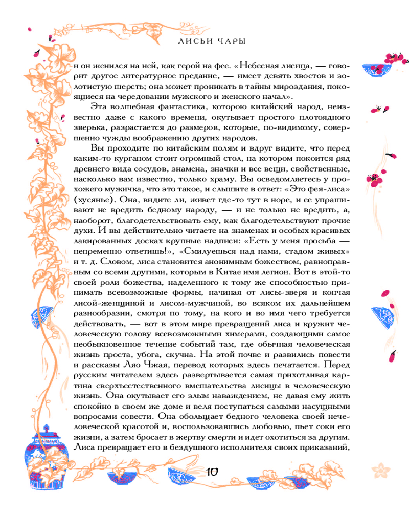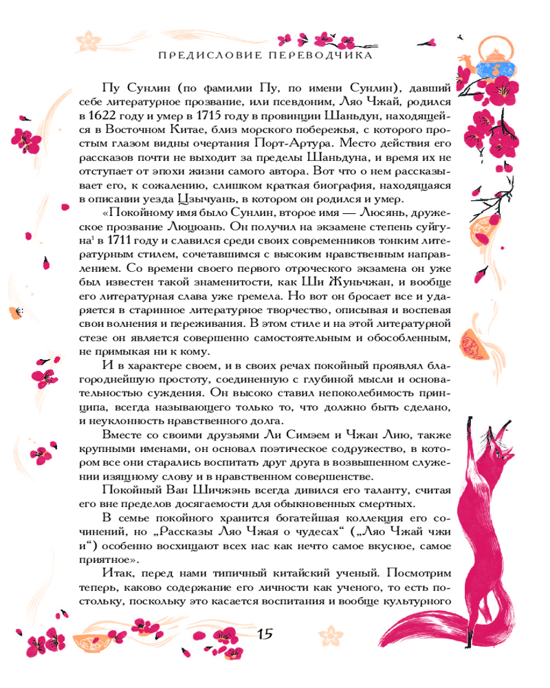 Серия: Подарочные издания. Мифология Что будет, если соединить «Вечера на хуторе близ Диканьки» Николая Гоголя, страшные сказки и поэмы немецких романтиков и перенести действие в Китай XVII века? «Ляо-чжай-чжи-и» («Повести о странном из кабинета Ляо») Пу Сунлина — самобытный памятник китайской литературы, не уступающий размахом «Декамерону» Боккаччо и «Кентерберийским рассказам» Чосера. Ляо Чжай — псевдоним и альтер эго автора — типичный вечный студент, проваливший экзамены и погрязший в чиновничьей бюрократии, из-за которой все никак не устроится его карьера, находит отдушину в коллекционировании историй и анекдотов о встречах со сверхъестественным. А сверхъестественное между тем настойчиво вмешивается в жизнь обычных людей — на рынке показывают свои фокусы монахи-даосы и чародеи, новый объект увлечения оказался оборотнем, в заброшенной усадьбе по соседству поселилось целое семейство бесов, да и в собственном доме хватает паранормальной активности: летают вещи, лиса-полтергейст выживает родственников, а по ночам захаживает голодное привидение... |
