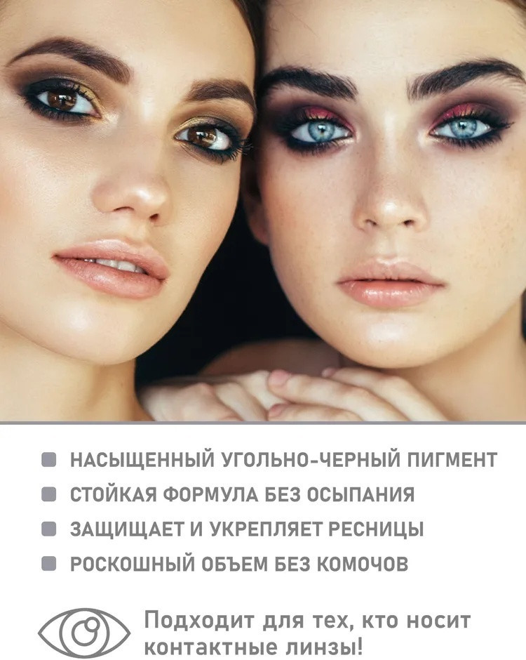 Веганская формула защищает и укрепляет ресницы благодаря органическому касторовому маслу и аргинину, а минеральные пигменты окрашивают ресницы в угольно-черный. Стойкая формула туши не осыпается и держится весь день. Большая щеточка в форме песочных часов добавляет ресницам объем без склеивания. Протестировано дерматологами и офтальмологами. Можно использовать при ношении контактных линз.