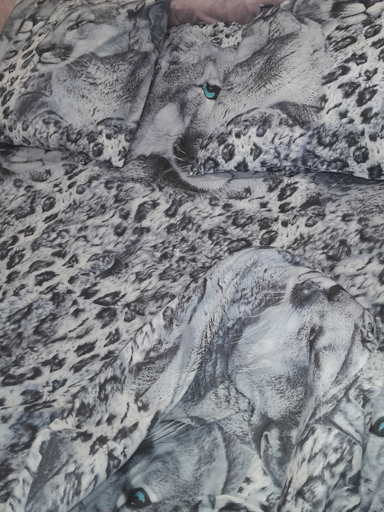 Очень хороший комплект! Соответствует описанию. Эффект 3D незначительный, но подкупает цвет глаз пумы. Качество нравится - люблю бязь. Спасибо магазину!
