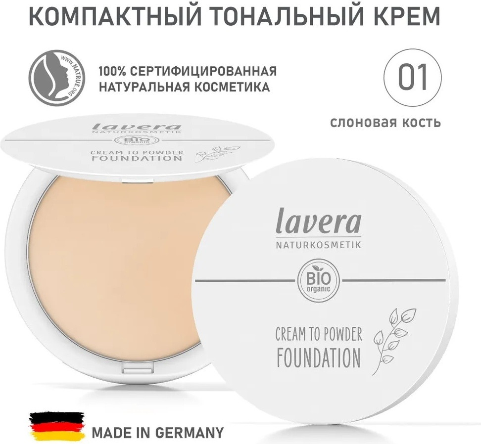 Lavera Компактный тональный крем 2 в 1, оттенок 01 Слоновая кость