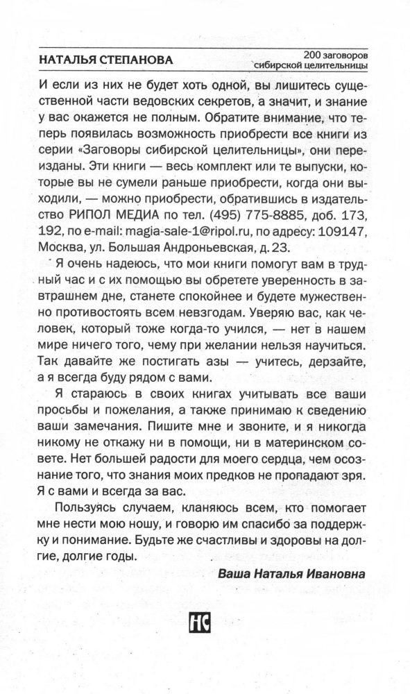 Воспользовалась одним заговором, помог, хотя даже не ожидала результата. Теперь приобрету все книги из этой серии.