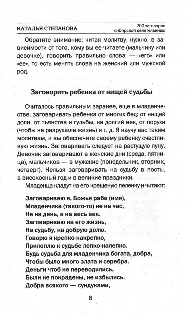 200 заговоров сибирской целительницы для счастья детей больших и малыхВ данный момент этот товар отсутствует в продаже. Возможно, у нас найдется аналогичный или похожий товар здесь. Серия: Для дома, для семьи Каждая мать всем сердцем желает защитить своего ребенка сколько бы лет ему ни было от зависти и злобы, уберечь от бед и несчастий, позаботиться о здоровье и помочь стать счастливым. Вот только как этого можно добиться? Как уговорить судьбу быть благосклонной к нему? В книге, которую вы держите в руках, мои дорогие читатели и ученики, собраны заговоры и обряды для счастья детей, больших и малых, которые являются ответами на самые часто встречающиеся вопросы, которые вы задаете в ваших письмах, во время приема у меня. |