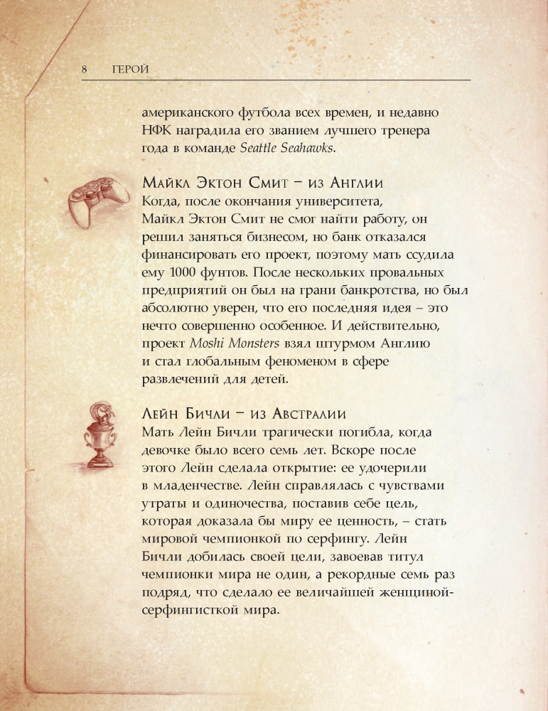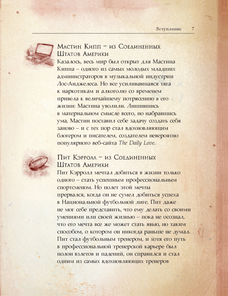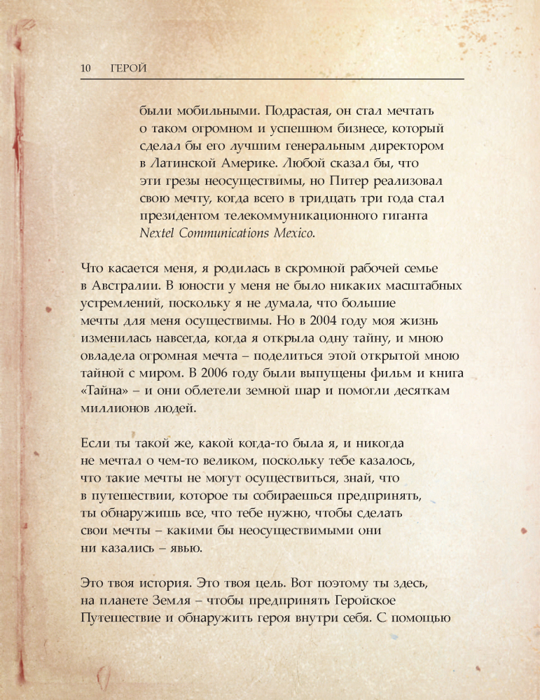 ГеройВ данный момент этот товар отсутствует в продаже. Возможно, у нас найдется аналогичный или похожий товар здесь. Серия: Сенсация Представь, что на свете существует карта, которая может показать тебе путь к абсолютно счастливой и совершенной жизни, о которой ты всегда мечтал. Так вот, книга "Герой" и есть такая карта. Двенадцать из наиболее успешных людей, живущих в современном мире, следовали этой карте. Они рассказывают о своих, кажущихся невероятными, путешествиях и говорят, что каждый из нас был рожден, уже имея все необходимое, чтобы осуществить свою величайшую мечту, и что, реализовав ее, мы исполним нашу миссию, обретем вечное счастье и буквально изменим мир. |