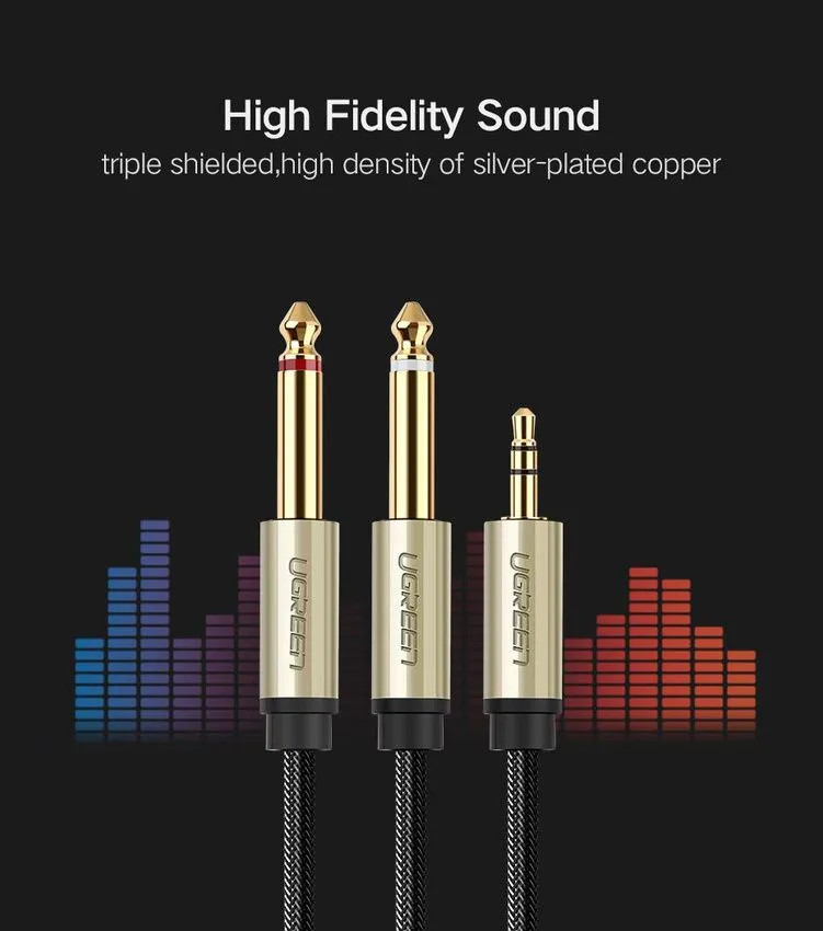 Ugreen Кабель Audio(m) 3.5mm — 2хAudio(m) 6.3mmВ данный момент этот товар отсутствует в продаже. Возможно, у нас найдется аналогичный или похожий товар здесь. Кабель UGREEN AV126 3.5 mm TRS to 2×6.3 mm TS представляет собой профессиональный кабель для записи звука. Высококачественный кабель позволяет записывать звук с микшеров непосредственно на рекордер Zoom, Tascam и другие микшеры на которых имеется гнездо 3,5-мм TRS. Кабель имеет позолоченный 3,5mm разъем с одной стороны и двойной 6.5mm с другой. У кабеля хорошее сечение и обмотка из плотного синтетического материала. |