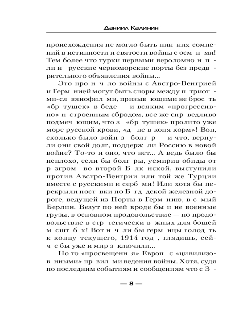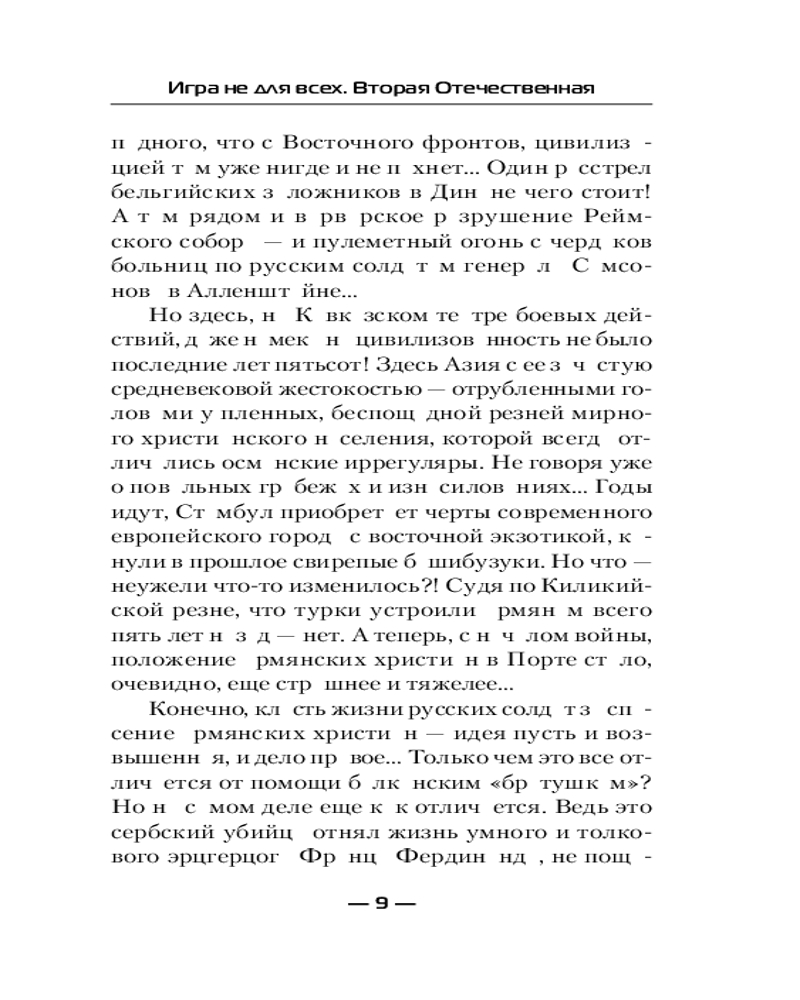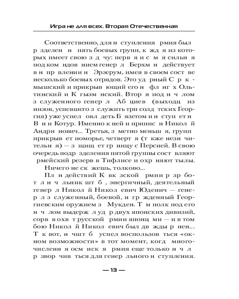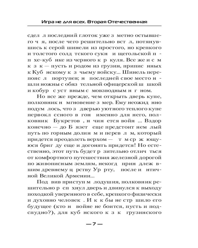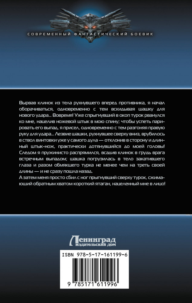 💳 Оплатить за товар можно при получении 🇰🇿 Есть бесплатная доставка по Казахстану от 1 дня 🎁 Копите бонусы с каждой покупки Серия: Современный фантастический боевик До Великой Отечественной войны в истории двадцатого века в России была еще одна «Отечественная» война — вторая по счету. И началась она с нападения кайзеровской Германии и Австро-Венгрии на Российскую империю в августе 1914 года. Ее история, ее подвиги и трагедии во многом забыты — к примеру, героическая оборона Сарыкамыша, тяжелые бои Горлицкого прорыва, геноцид армян и русин... Но разработчики виртуальной реальности решили создать игру по Первой мировой — и бета-тестером вновь становится Роман Самсонов. Вот только он не знает, что из-за неизвестного вируса сразу потеряет связь с капсулой и будет вынужден выживать в тяжелейших боях декабря 1914-го на Кавказском фронте... |