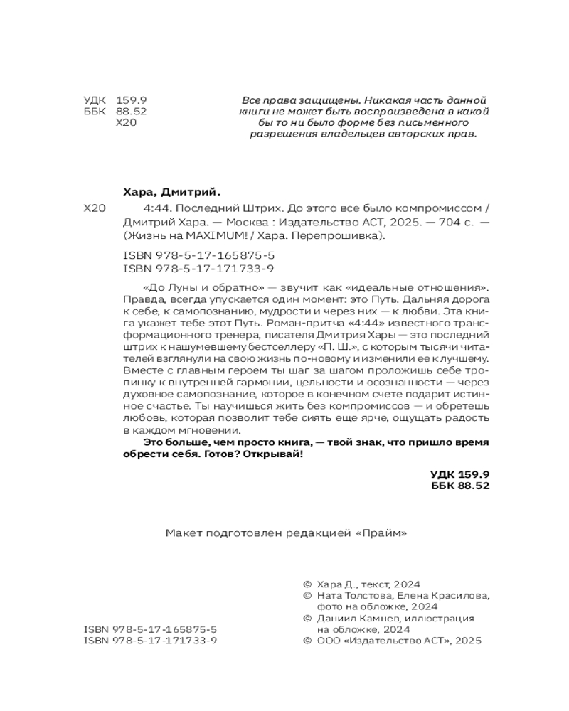 💳 Оплатить за товар можно при получении 🇰🇿 Есть бесплатная доставка по Казахстану от 1 дня 🎁 Копите бонусы с каждой покупки Серия: Жизнь на Maximum! Бывает, пазл вроде бы подходит, но картинка не складывается. Как будто что-то не то. Как будто все неверно. Как будто твоя жизнь, но и не твоя. Знакомое ощущение? Тогда считай эту книгу судьбой. |