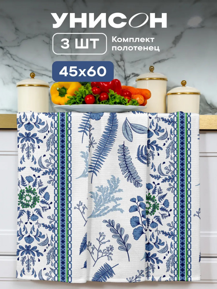 | Унисон Комплект полотенец вафельных «Blue leaves»