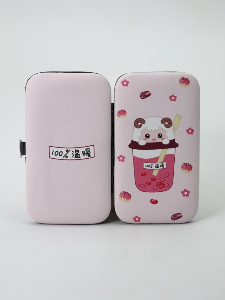 Toki Маникюрный набор «Sheep cocktail»В данный момент этот товар отсутствует в продаже. Возможно, у нас найдется аналогичный или похожий товар здесь. Чехол маникюрного набора выполнен из плотного картона, с металлической окантовкой, обшит экокожей с нанесением дизайнерского принта. Внутри имеется большое отделение с креплениями для маникюрных инструментов. В комплект входят 7 инструментов, включая ножницы, щипцы, пинцет, пилочку и т.д. На все инструменты нанесено антикоррозийное покрытие. Закрывается на защёлку. |