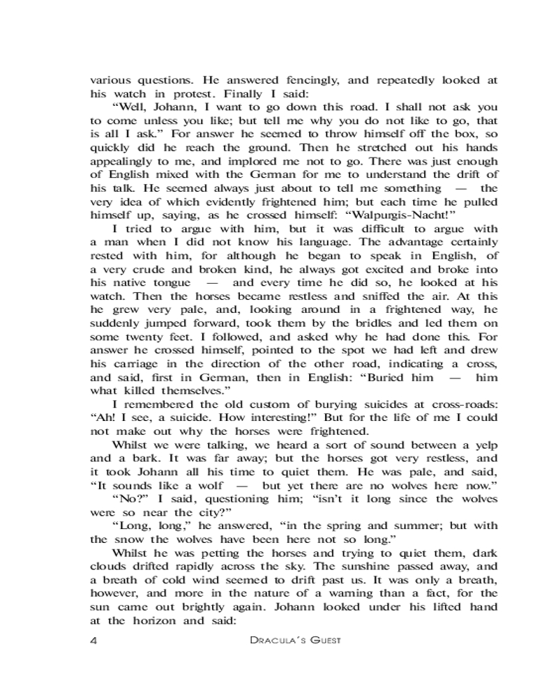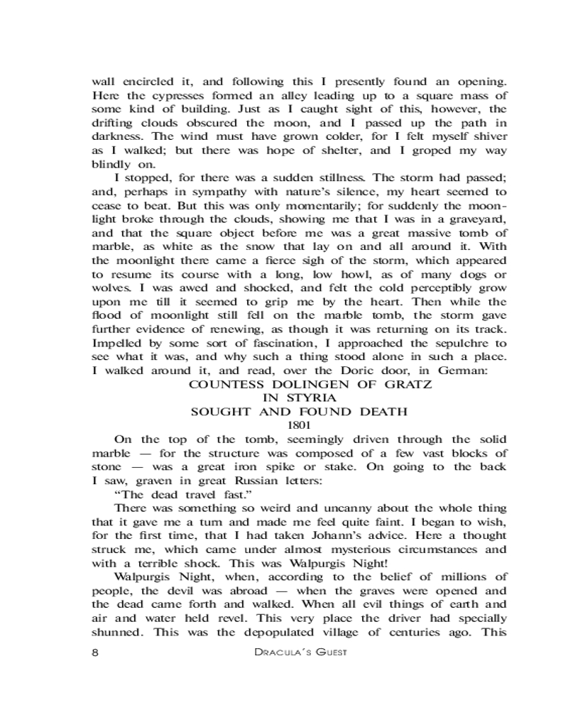 💳 Оплатить за товар можно при получении 🇰🇿 Есть бесплатная доставка по Казахстану 🎁 Копите бонусы с каждой покупки Серия: Lingua Moderna Брэм Стокер в первую очередь известен как автор «Дракулы», однако он также является мастером малой прозы. «Гость Дракулы» — сборник рассказов, впервые опубликованный в 1914 году, спустя два года после его смерти. Заглавный рассказ, «Гость Дракулы», представляет собой пролог к знаменитому роману «Дракула», который был удален из финальной версии книги. В нем описывается путешествие молодого англичанина Джонатана Харкера в Восточную Европу, где он сталкивается с таинственными и страшными явлениями, предвещающими его встречу с графом Дракулой. Помимо «Гостя Дракулы», сборник содержит и другие произведения, наполненные мрачной атмосферой и сверхъестественными событиями, демонстрирующие мастерство Стокера в жанре готической литературы. В сборник вошли «The Judge’s House», «The Squaw», «The Secret of the Growing Gold», «A Gipsy Prophecy», «The Coming of Abel Behenna», «The Burial of the Rats», «A Dream of Red Hands» и «Crooken Sands». |