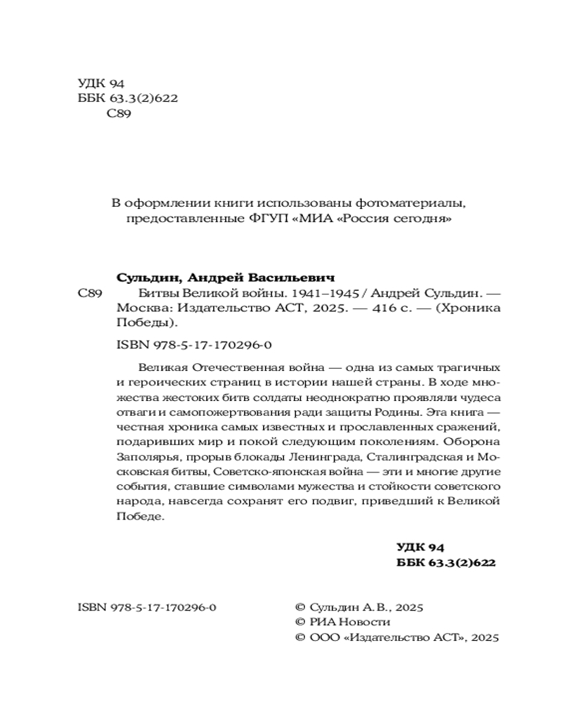 💳 Оплатить за товар можно при получении 🇰🇿 Есть бесплатная доставка по Казахстану 🎁 Копите бонусы с каждой покупки Серия: Хроника Победы Великая Отечественная война — одна из самых трагичных и героических страниц в истории нашей страны. В ходе множества жестоких битв солдаты неоднократно проявляли чудеса отваги и самопожертвования ради защиты Родины. Эта книга — честная хроника самых известных и прославленных сражений, подаривших мир и покой следующим поколениям. Оборона Заполярья, прорыв блокады Ленинграда, Сталинградская и Московская битвы, Советско-японская война — эти и многие другие события, ставшие символами мужества и стойкости советского народа, навсегда сохранят его подвиг, приведший к Великой Победе. |