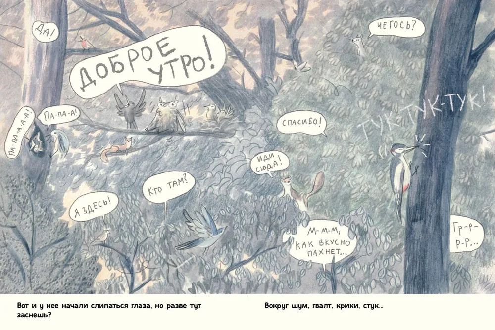 В лесу живет сова и она не спит по ночам. А утром ей все мешают спать. Почему так получилось? Сова решает разобраться и начинает расспрашивать жителей леса — белку, паука, медведя... Но и у кого нет для нее ответа. Сова была в отчаянии, пока не встретила ежика, который спит, ест и играет, когда он привык. И сова увидела, что все лесные обитатели живут по-своему, и нет ничего страшного в том, что кто-то по ночам спит, а кто-то — бодрствует. |