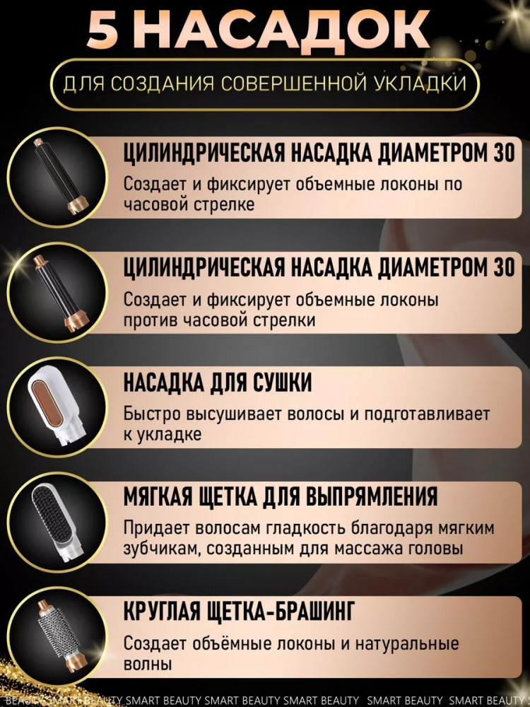 Фен-стайлер с насадками 5 в 1лёгкий удобный быстро сушит хорошо укладывает В данный момент этот товар отсутствует в продаже. Возможно, у нас найдется аналогичный или похожий товар здесь. Профессиональный фен для волос с насадками, вдохновленный технологией Dyson, станет незаменимым инструментом для создания стильных укладок каждый день. Этот фен-стайлер с пятью насадками предлагает идеальное решение для быстрой и качественной укладки. Этот качественный аналог Dyson фена обеспечивает профессиональные результаты, легко укладывая волосы и придавая им объем, гладкость и блеск. |