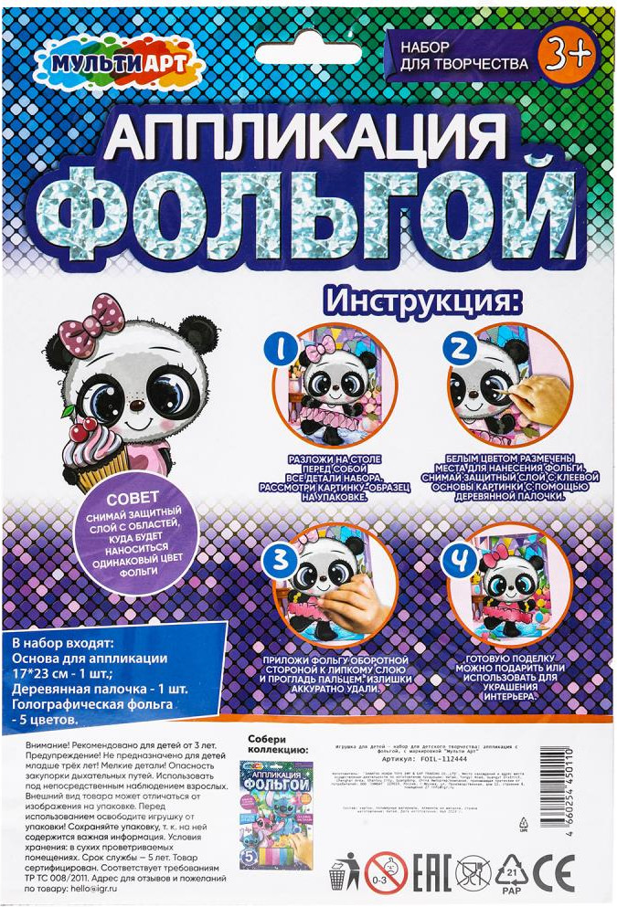 Серия: Сказочная мастерская Набор для творчества — аппликация из фольги «Панда» из серии «Сказочная мастерская» ТМ «Мульти Арт» — отличный подарок для ребёнка, который будет способствовать развитию его творческих способностей. |