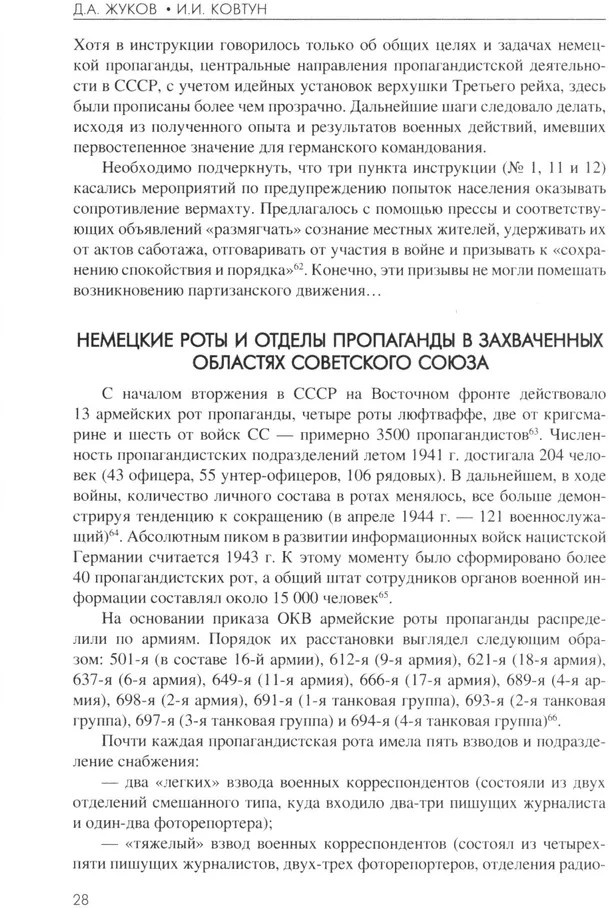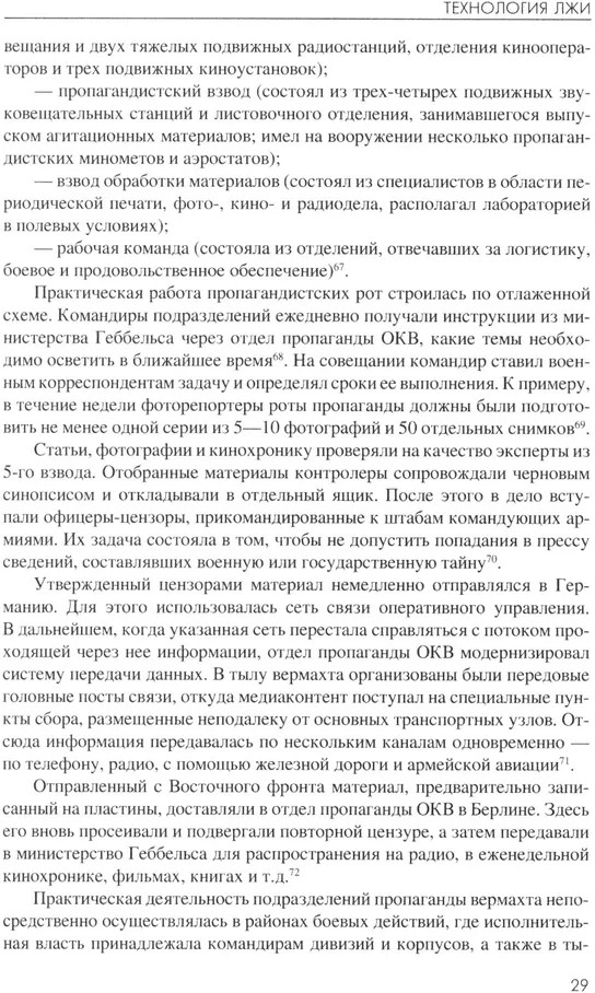 Технология лжи. Нацистская антипартизанская пропаганда на оккупированных территориях СССР. 1941-1944 ггДмитрий Александрович Жуков, Иван Иванович Ковтун В данный момент этот товар отсутствует в продаже. Возможно, у нас найдется аналогичный или похожий товар здесь. Серия: Третий рейх. Суд истории В годы Великой Отечественной войны на оккупированных территориях СССР развернулось мощное партизанское движение. Нацисты пытались его подавить не только вооруженными средствами, но и с помощью пропаганды. Для дискредитации и разложения сил «народных мстителей» враг использовал разветвленный, насыщенный профессиональными кадрами пропагандистский аппарат, в рамках которого действовали представители вермахта, СС, имперских министерств Й. Геббельса и А. Розенберга. При непосредственном участии этих органов осуществлялось информационно-психологическое воздействие на партизан и население. |