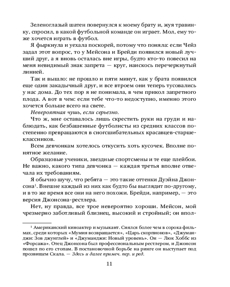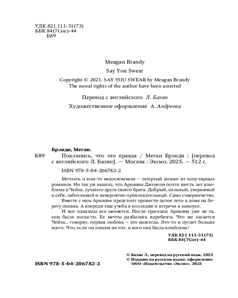💳 Оплатить за товар можно при получении 🇰🇿 Есть бесплатная доставка по Казахстану от 1 дня 🎁 Копите бонусы с каждой покупки Серия: Pink Room. Элитные парни Меган Брэнди Мечтать о ком-то недосягаемом — затертый штамп из популярных романов. Но так уж вышло, что Арианна Джонсон почти шесть лет влюблена в Чейза, лучшего друга своего брата. Добрый, сильный, уверенный в себе, заботливый и невероятно привлекательный. Само совершенство. Вместе с ним Ариане предстоит провести целое лето в доме на берегу океана. А впереди еще учеба в колледже и встречи в кампусе. И вот однажды всё меняется. После трагедии Арианна уже не та, кем была когда-то. Ее мечты разбились вдребезги. Что же касается Чейза... Говорят, первая любовь — это навсегда. Это-то и пугает больше всего. Что, если он совсем не тот, в кого она была влюблена? |