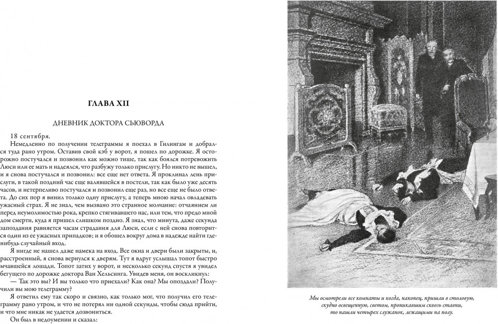 Помимо культового романа Брэма Стокера «Дракула» в переводе Н. Сандровой и Р. Грищенкова, сборник включает рассказ «Гость Дракулы» в переводе Р. Грищенкова, а также роман «Вампиры. Из семейной хроники графов Дракула-Карди», который является предысторией графа Дракулы, описанной Стокером. Этот роман был написан в 1912 г. по заказу издательства В. М. Саблина неизвестным русским автором, взявшим себе псевдоним Барон Олшеври. Книгу украшают черно-белые иллюстрации живописца Альфреда Рудольфовича Эберлинга.