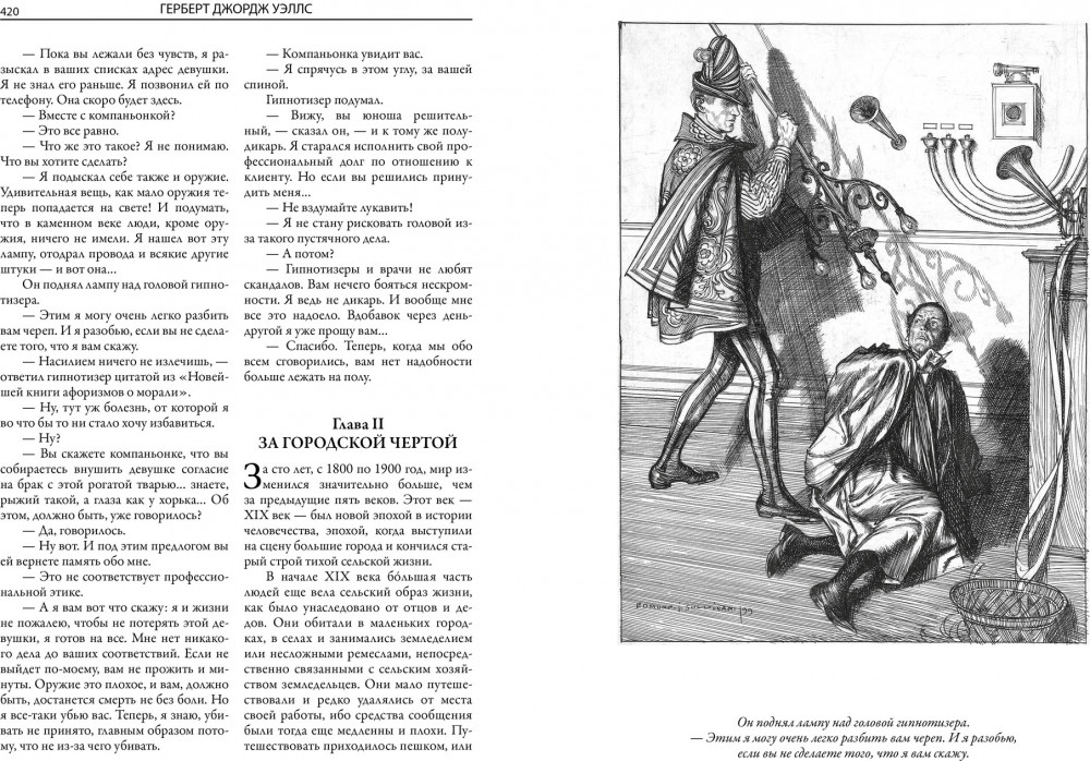 В оформлении книги использованы иллюстрации сразу нескольких зарубежных мастеров. Британский художник и гравер Артур Майкл появился на свет в 1881 году. Он долго сотрудничал с такими журналами как «Иллюстрейтед Лондон Ньюз» и «Монинг Стар», однако в историю Майкл вошел именно как иллюстратор книг. Французский художник Анри Лано был на 22 года старше Майкла. Он родился в Париже и начал впервые публиковать свои иллюстрации в 1892 году. Фантастика была его любимой темой. Лано и сам был литератором. Он написал несколько романов, в которых, как и Уэллс, делал прогнозы на будущее. Чешский художник Франтишек Женишек родился в 1849 году. В историю он вошел благодаря своим портретам, настенным росписям и полотнам в классическом академическом стиле. Еще один британский художник, чьи работы украшают книгу — Эдмунд Салливан. Он появился на свет в 1869 году, в девятнадцать лет начал публиковать свои работы в журнале «Дейли Графикс», а затем в своих иллюстрациях к книгам сочетал приемы английской школы живописи с веяниями арт-нуво и элементами стиля Обри Бердслея.