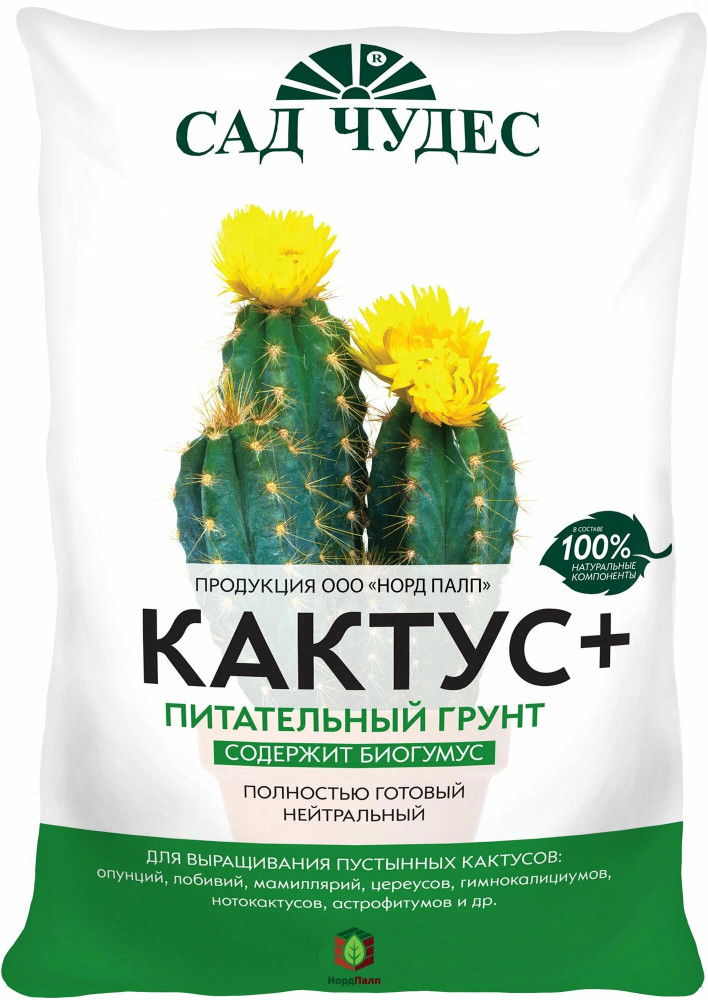 Сад чудес Грунт питательный «Кактус +»В данный момент этот товар отсутствует в продаже. Возможно, у нас найдется аналогичный или похожий товар здесь. «Кактус плюс» — полностью готовый торфяной питательный грунт предназначенный для выращивания толостянки, кактуса, алоэ, зигокактуса усеченного, эпифиллюма, апорокактуса, эхинопсиса, ребуции, пародии, псевдолобивии, пиерейскии, суккулентов. Грунт эффективен для всех видов садовых растений. Произведен на основе фрезерного торфа верхового типа нейтрализованного известняковыми материалами. Питательный грунт улучшает всхожесть семян и приживаемость растений, а так же декоративные свойсва цветов. Почвогрунт полностью готовый нейтральный, повышенной плотности с добавлением мраморного отсева для оптимального содержания кальция, керамзитового отсева и песка, с пониженным содержанием элементов питания. Особенно эффективен для выращивания кактусов. |
