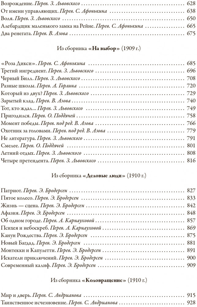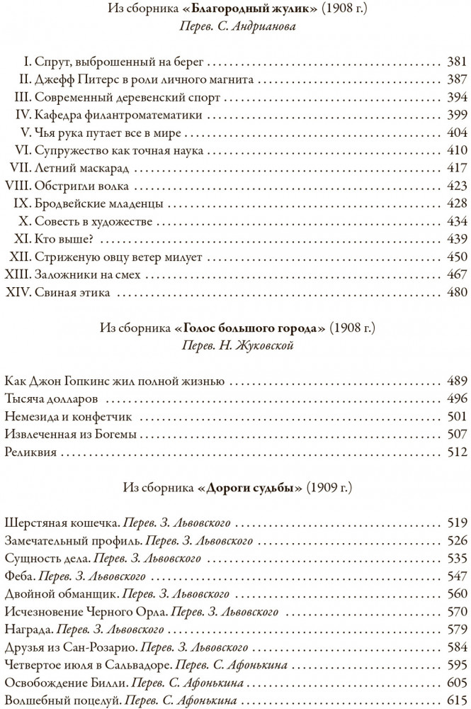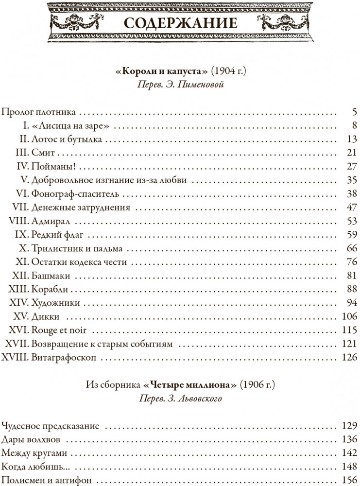 В данное внушительное издание включены сто сорок семь произведений писателя из двена-дцати его сборников, в том числе и самое знаменитое произведение — «Короли и капуста». Многочисленные комментарии к рассказам в издании помогают воспринимать как все тонко-сти стиля писателя, так и реалии американской жизни на рубеже XIX и XX веков. Издание украшают около пятисот иллюстраций к произведениям писателя из книжных и журнальных публикаций начала XX века.