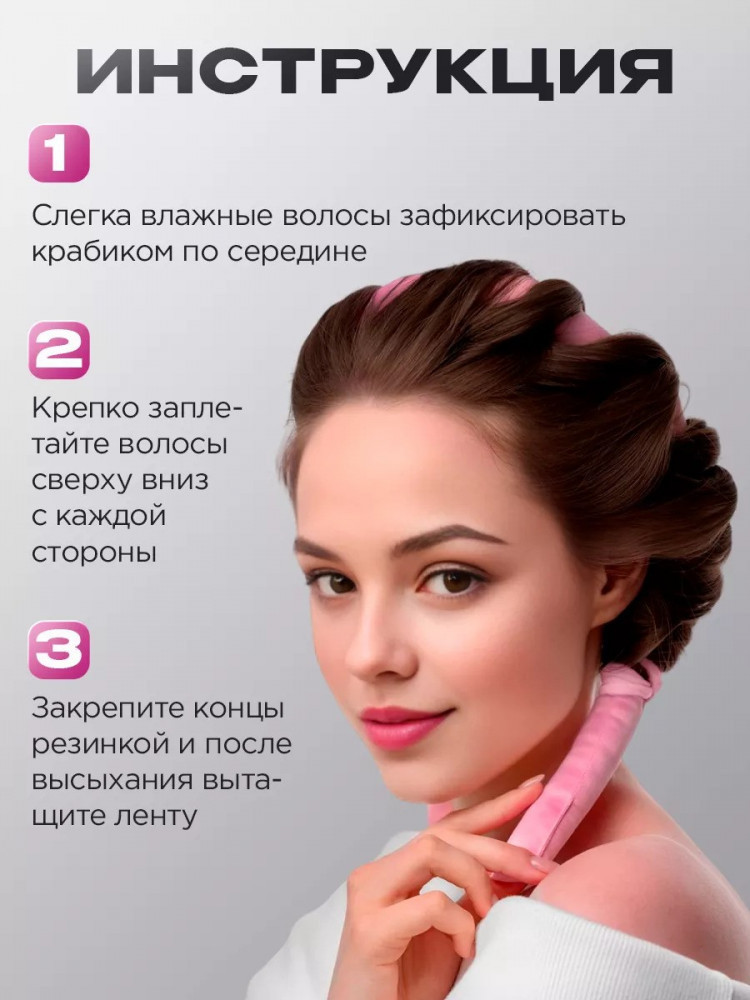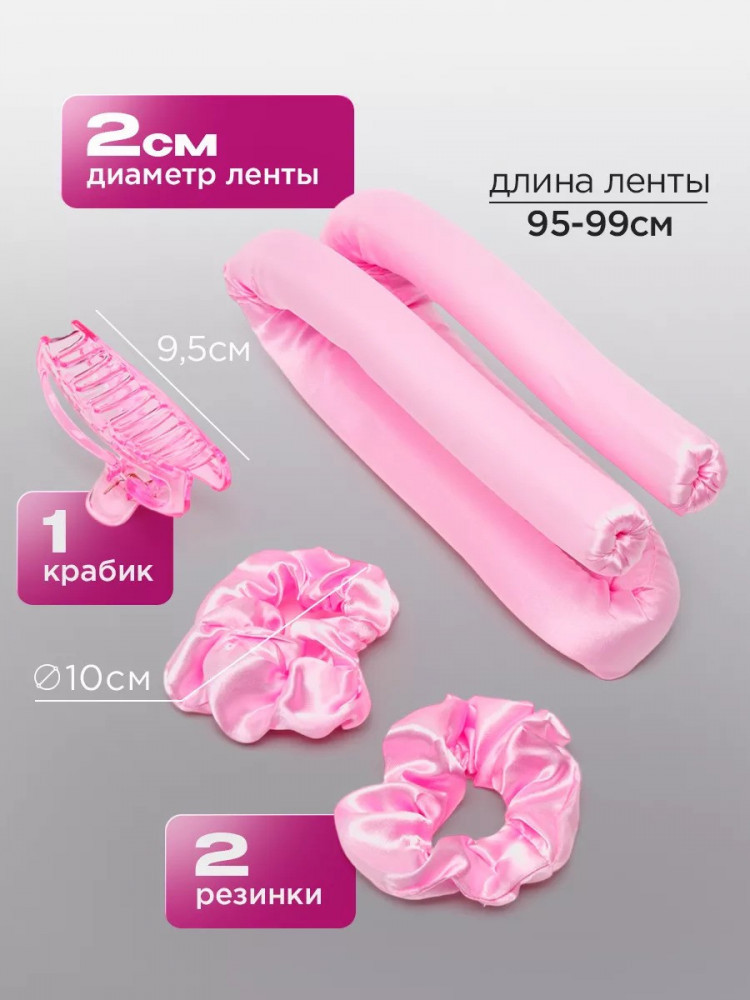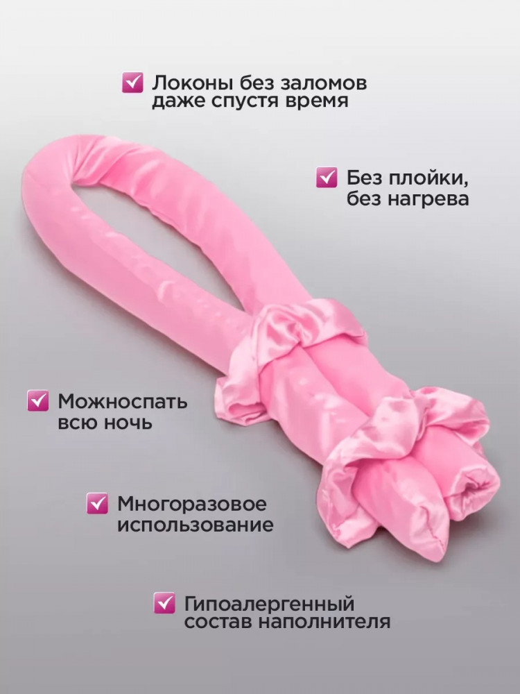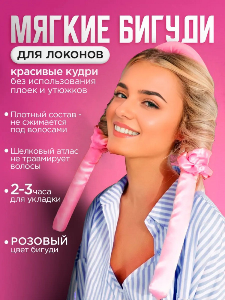 Бигуди для завивки кудрей являются модным современным трендом в индустрии красоты. Лента для волос выполнена из мягкого поролона и гладкой атласной ткани. Благодаря этому длинные волосы не травмируются во время завивки и сна, в отличие от использования плоек. Набор для укладки состоит из гибкой монобигуди, двух шелковых резинок и крабика. Валик подходит и для средней длины. Пряди следует накрутить по спирали вокруг бигуди и зафиксировать резиночками и зажимом сверху. Предварительно рекомендуется увлажнить волосы или нанести фиксатор для укладки. Как результат — шикарные крупные кудри и естественная волна. Ночные большие бигуди ободок — абсолютно безопасный аксессуар, который отличается отсутствием травматизации и легкостью в применении. Незаменимый атрибут для создания объемной прически на каждый день в домашних условиях. Степень закрученности завитков можно регулировать путем более плотного или свободного наматывания локона вокруг бигуди.