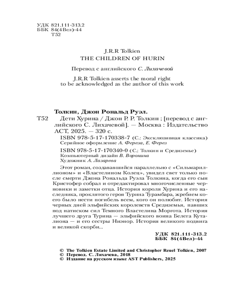 | Дети Хурина Джон Рональд Руэл Толкин