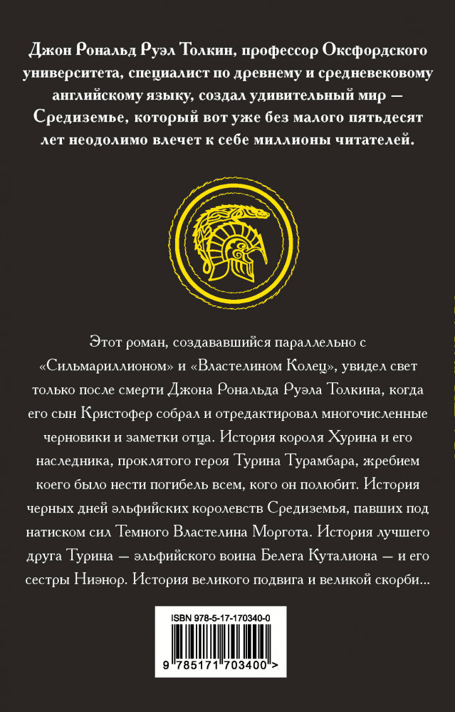 В данный момент этот товар отсутствует в продаже. Возможно, у нас найдется аналогичный или похожий товар здесь. Серия: Толкин и Средиземье Этот роман, создававшийся параллельно с «Сильмариллионом» и «Властелином Колец», увидел свет только после смерти Джона Рональда Руэла Толкина, когда его сын Кристофер собрал и отредактировал многочисленные черновики и заметки отца. История короля Хурина и его наследника, проклятого героя Турина Турамбара, жребием коего было нести погибель всем, кого он полюбит. История черных дней эльфийских королевств Средиземья, павших под натиском сил Темного Властелина Моргота. История лучшего друга Турина — эльфийского воина Белега Куталиона — и его сестры Ниэнор. История великого подвига и великой скорби... |