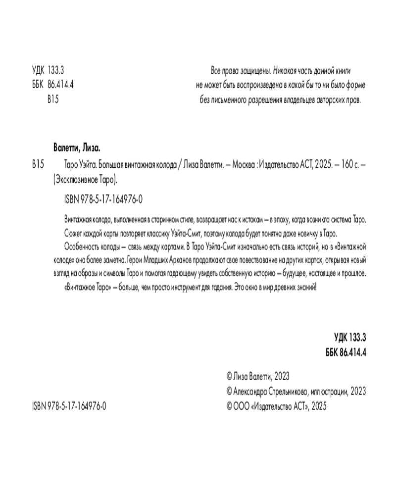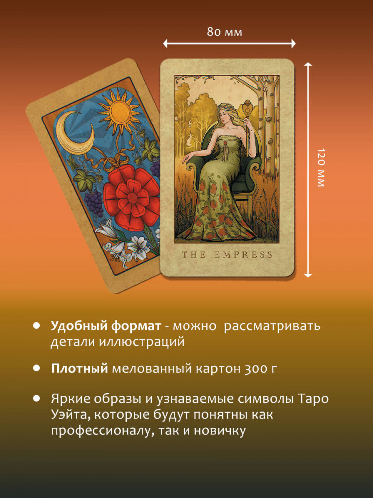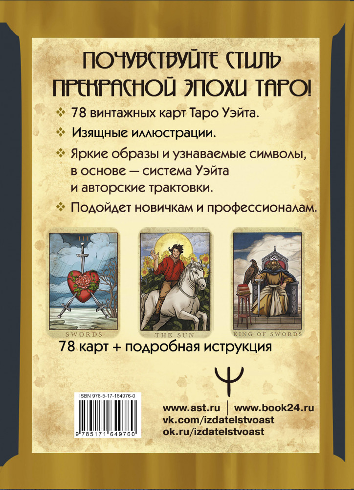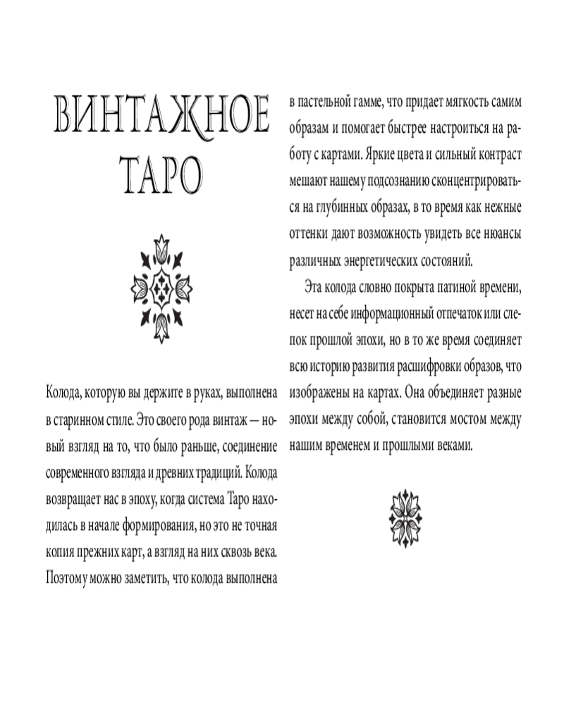 💳 Оплатить за товар можно при получении 🇰🇿 Есть бесплатная доставка по Казахстану 🎁 Копите бонусы с каждой покупки Серия: Эксклюзивное Таро (Коробка с картами + руководство) Винтажная колода, выполненная в старинном стиле, возвращает нас к истокам — в эпоху, когда возникла система Таро. Она специально отрисована в пастельной гамме, что придает мягкость образам на картах и помогает быстрее настроиться на работу с ними. Нежные оттенки дают возможность увидеть все нюансы различных энергетических состояний. Эта колода словно несет в себе отпечаток прошлой эпохи, но в то же время соединяет всю историю развития и расшифровки образов Таро. Она служит мостом между нашим временем и прошлыми веками. Сюжет каждой карты повторяет классическую колоду Уэйта-Смит, поэтому будет понятен даже новичку в Таро. Но автор также добавила новый взгляд на традиционные символы. Особенность колоды, которая редко встречается в других Таро — это связь историй на картах с помощью одних и тех же персонажей. В Таро Уэйта-Смит изначально есть связь историй между Арканами, но в этой колоде она более заметна. Герои Младших Арканов не пропадают, а продолжают свое повествование на других картах, раскрывая новые грани своих образов и символов. |