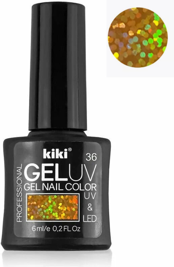 Kiki Гель-лак для ногтей «Gel Uv & Led», оттенок 36 Золотистый металлик с блестками