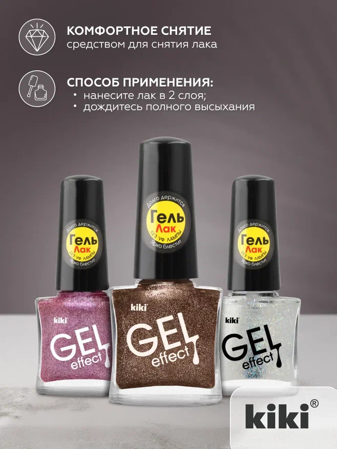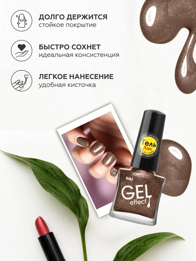 Kiki Лак для ногтей с гелевым эффектом «Gel effect», оттенок 085 Кофе с молоком с блестками
