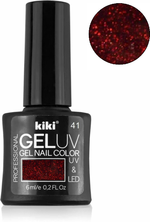 Kiki Гель-лак для ногтей «Gel Uv & Led», оттенок 41 Красный с блестками