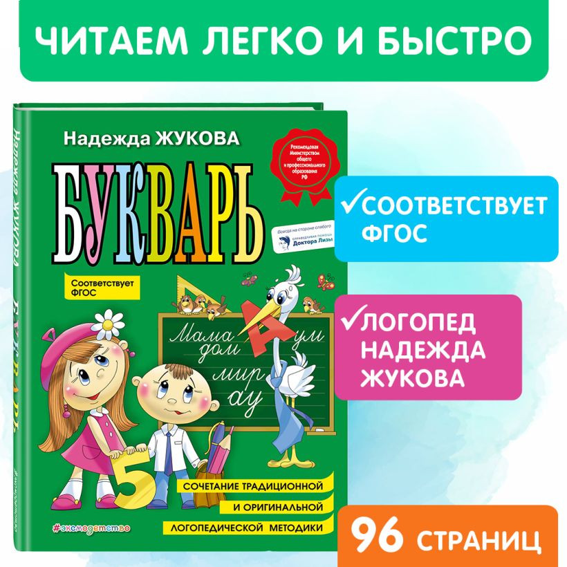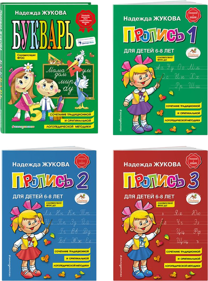 Готовимся к школе по методике знаменитого логопеда! Комплект бестселлеров Надежды Жуковой для обучения детей чтению и письму! «Букварь» Надежды Жуковой — классическое учебное пособие. Более 10 лет «Букварь» входит в ТОП-100 розничных продаж. Авторская методика известного логопеда-педагога заключается в изучении слогов, а не отдельно взятых букв. Это позволяет ребёнку быстро научиться читать и легко перейти к письму.