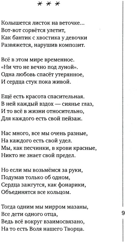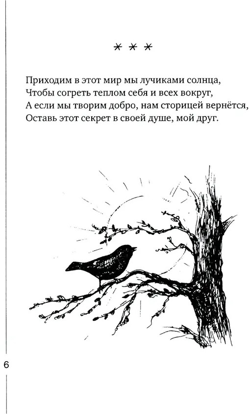 Серия: Современная поэзия Каждое стихотворение и даже четверостишие автор уводит читателя в глубину, увлекая в до понимание каждому по своему развитию души. Находясь в переходе планетарного изменения через повышение вибраций, меняется сознание каждого живого существа, имеющего Душу, что заложено в строках стихотворений. Приятного чтения |