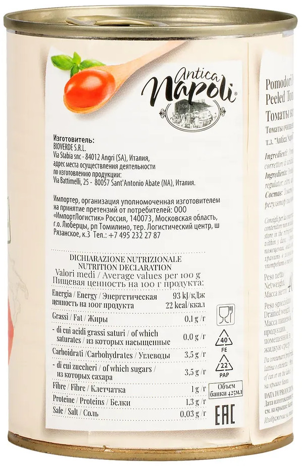 Antica Napoli Томаты целые очищенные в томатном соке