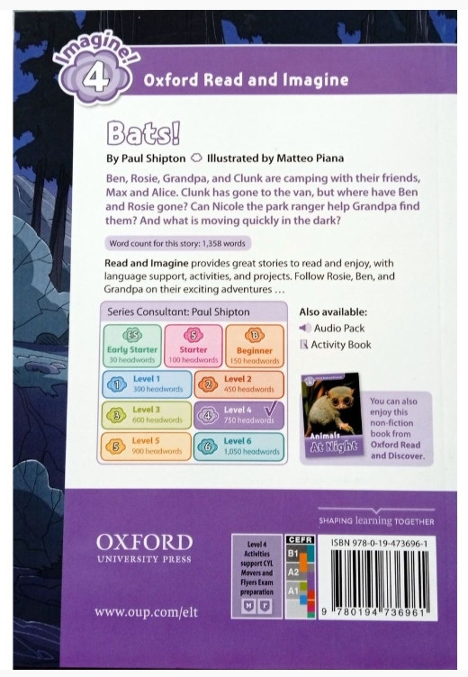 💳 Оплатить за товар можно при получении 🇰🇿 Есть бесплатная доставка по Казахстану от 1 дня 🎁 Копите бонусы с каждой покупки Серия: Oxford read and imagine Бэн, Роузи, дедушка и Кланк разбили лагерь со своими друзьями Максом и Элис. Кланк пошёл к фургону, но где же Бэн и Роузи? Сможет ли смотритель парка Николь помочь дедушке отыскать их? И что так быстро передвигается в темноте? |