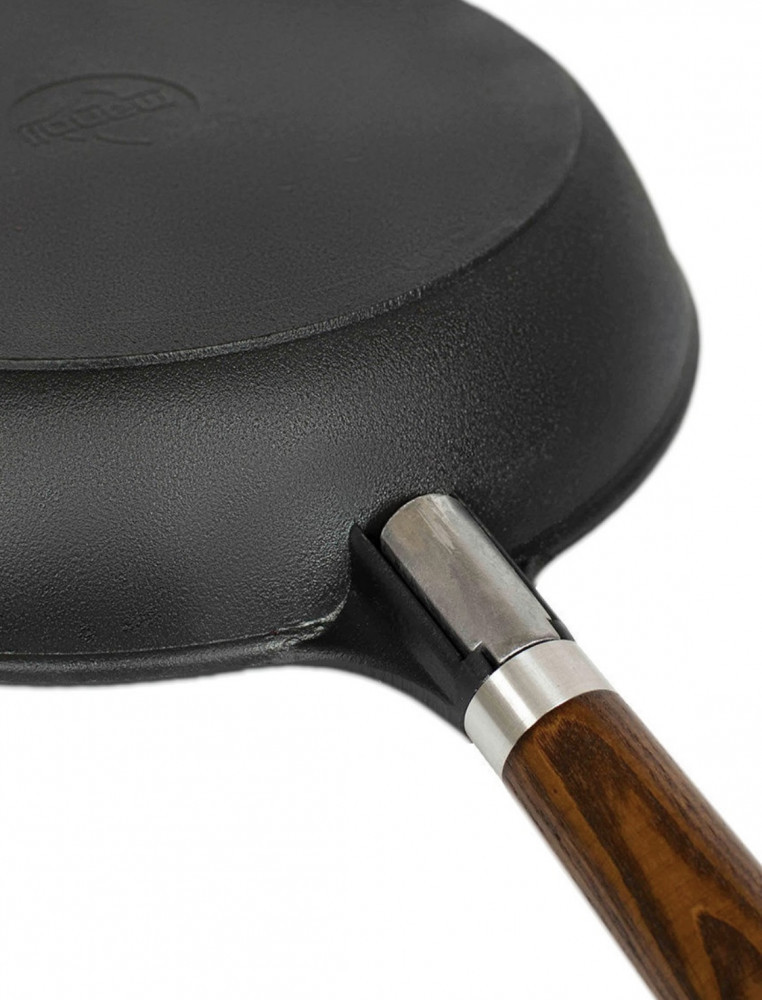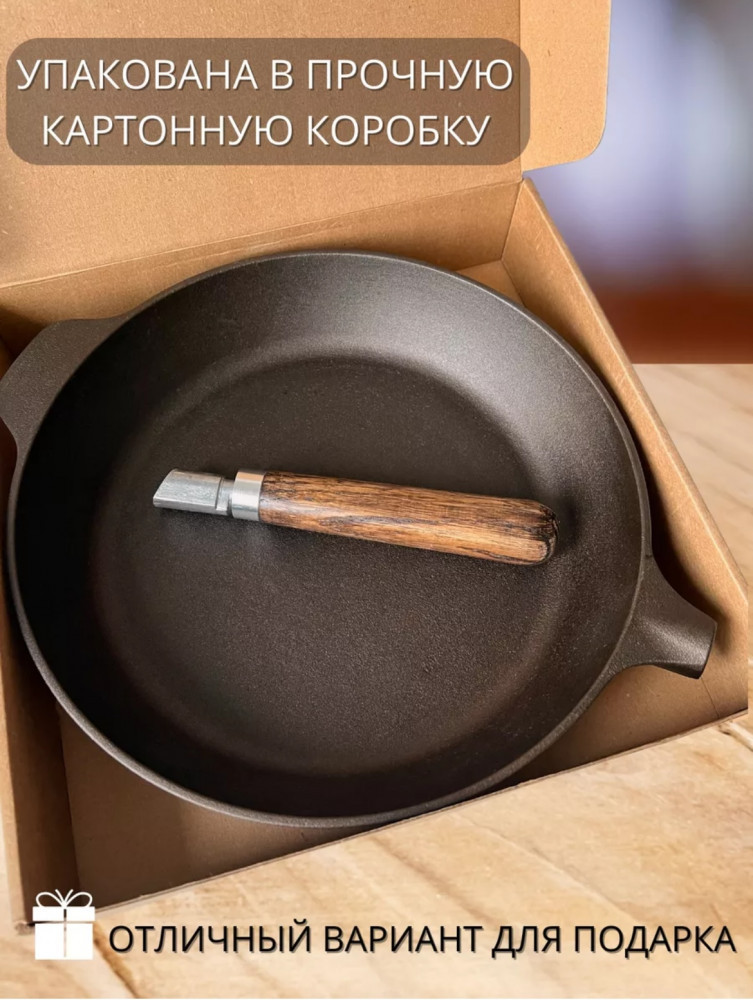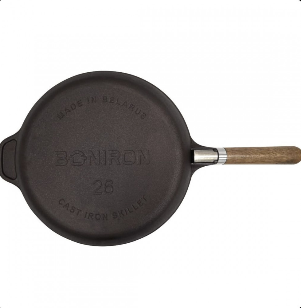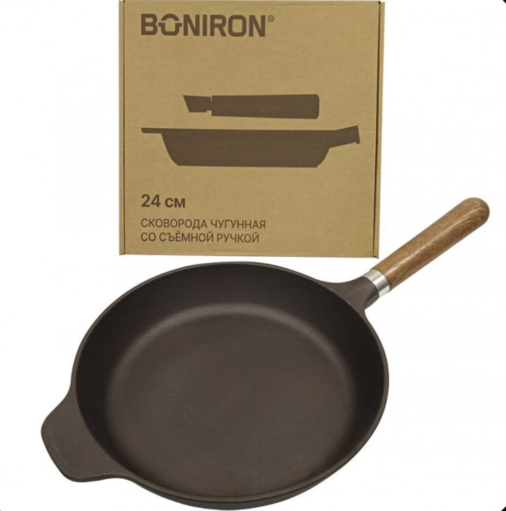Чугунная сковорода Boniron с быстросъёмной деревянной ручкой — это универсальная посуда для приготовления вкусных и полезных блюд. Она идеально подходит для жарки, тушения и запекания как на плите, так и в духовке.