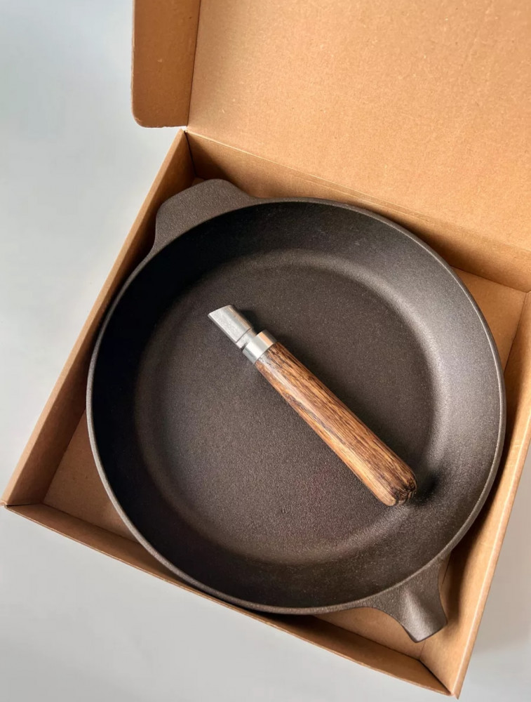 Совет по уходу: чугунная посуда требует регулярного ухода — избегайте замачивания в воде и мойте вручную, чтобы сохранить её свойства на долгие годы.