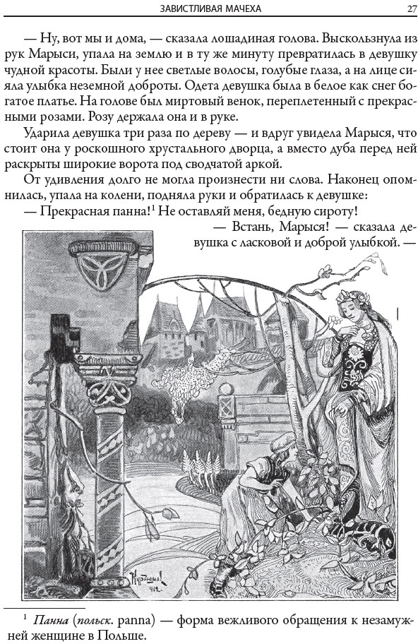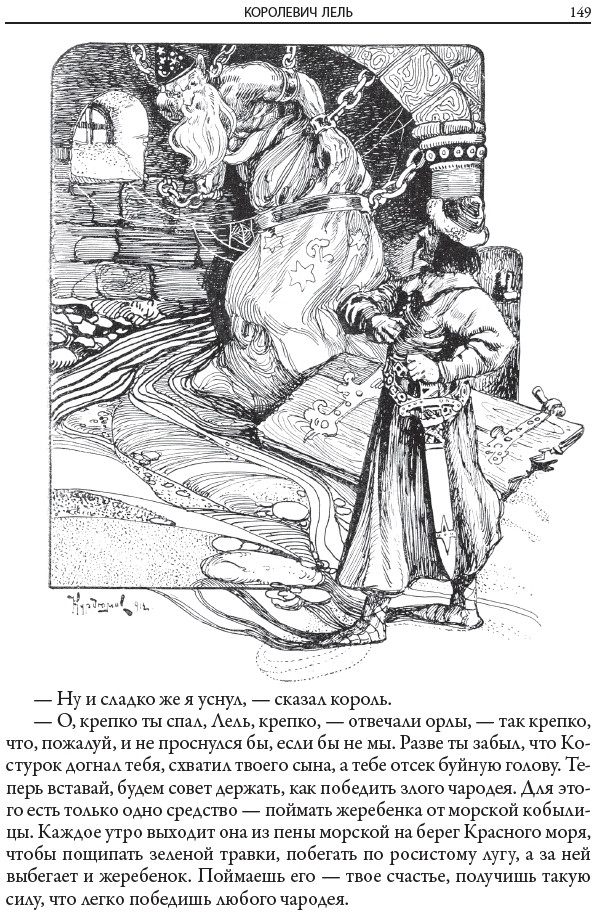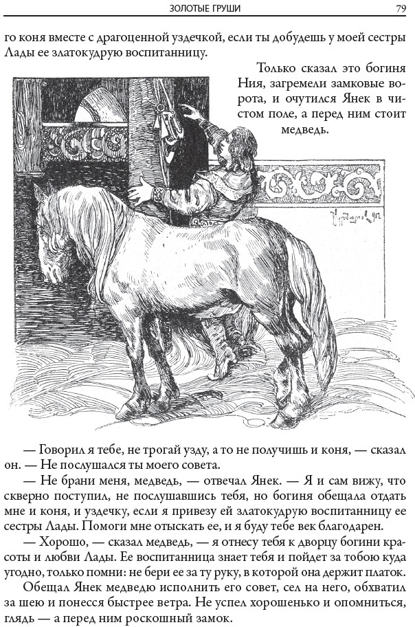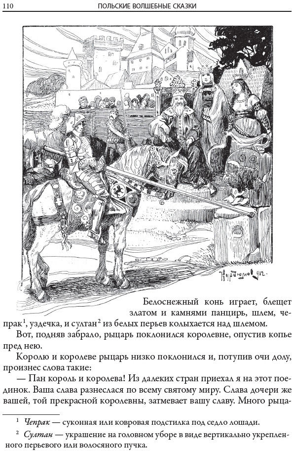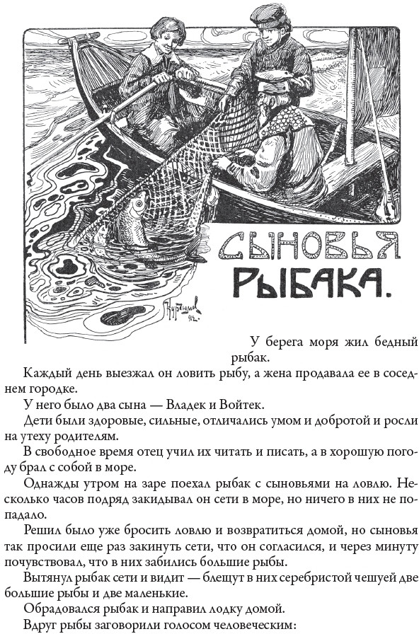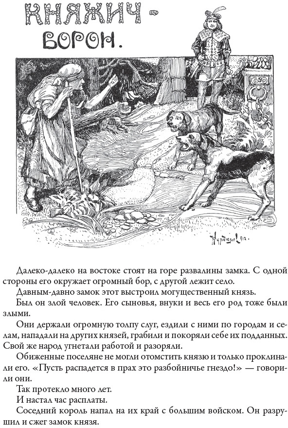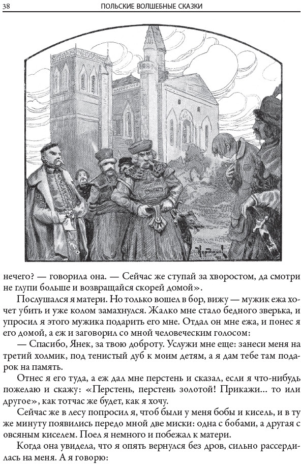 Восемнадцать польских сказок, составивших эту книгу, были впервые напечатаны знаменитым московским издателем Иваном Дмитриевичем Сытиным в 1914 году. Он сделал фантастическую карьеру от подручного в книжной лавке до видного книгоиздателя и владельца крупной сети книжных магазинов и лавок. Иван Дмитриевич старался сделать книги недорогими и привлекательными для читателей. Для этого он привлекал к оформлению своей продукции лучших художников России. С Сытиным сотрудничали такие мэтры живописи, как Илья Ефимович Репин и Иван Яковлевич Билибин. Для иллюстрирования сборника польских сказок Сытин привлек к работе талантливого художника Валерия Николаевича Курдюмова. Его рисунки украшают и это современное издание. Достаточно взглянуть на любую его иллюстрацию, чтобы сразу понять — это работа подлинного мастера. Курдюмов прекрасно владел композицией и техникой штрихового рисунка. С помощью тонких линий он прекрасно передавал мех медведя, складки одежды или игру света и тени на камнях в лесной чаще. В его манере чувствуется влияние и уникального билибинского стили, и модных художественных веяний начала ХХ века. Любопытно отметить, что Курдюмов был основателем знаменитого московского дома-коммуны в Лефортове, где проживали и занимались живописью многие художники самых различных направлений. В 1905 году там поселили Казимир Малевич, которого связывали с Курдюмовым теплые дружеские отношения. К сожалению, в истории сохранилось мало сведений о жизни В. Н. Курдюмова; лучшим памятником художника остаются его неподвластные времени рисунки. |