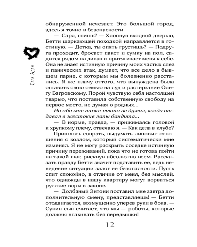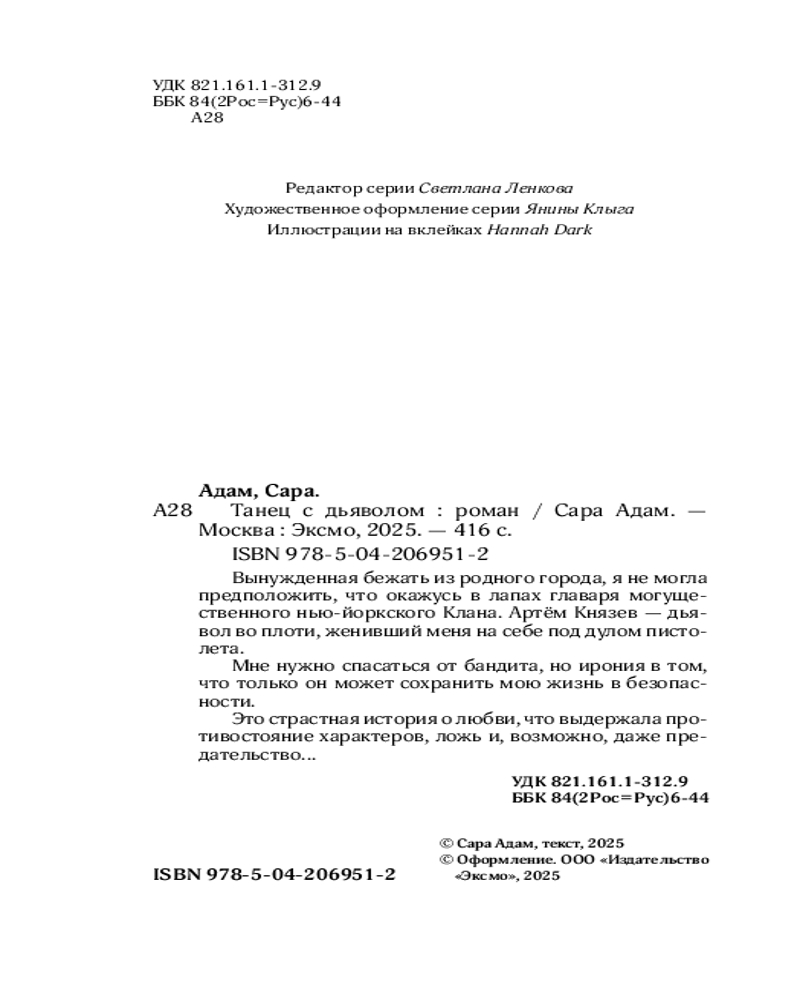 💳 Оплатить за товар можно при получении 🇰🇿 Есть бесплатная доставка по Казахстану от 1 дня 🎁 Копите бонусы с каждой покупки Серия: Вне законов любви. Темная романтика Вынужденная бежать из родного города, я не могла предположить, что окажусь в лапах главаря могущественного нью-йоркского Клана. Артём Князев — дьявол во плоти, женивший меня на себе под дулом пистолета. Мне нужно спасаться от бандита, но ирония в том, что только он может сохранить мою жизнь в безопасности. Это страстная история о любви, что выдержала противостояние характеров, ложь и, возможно, даже предательство... |