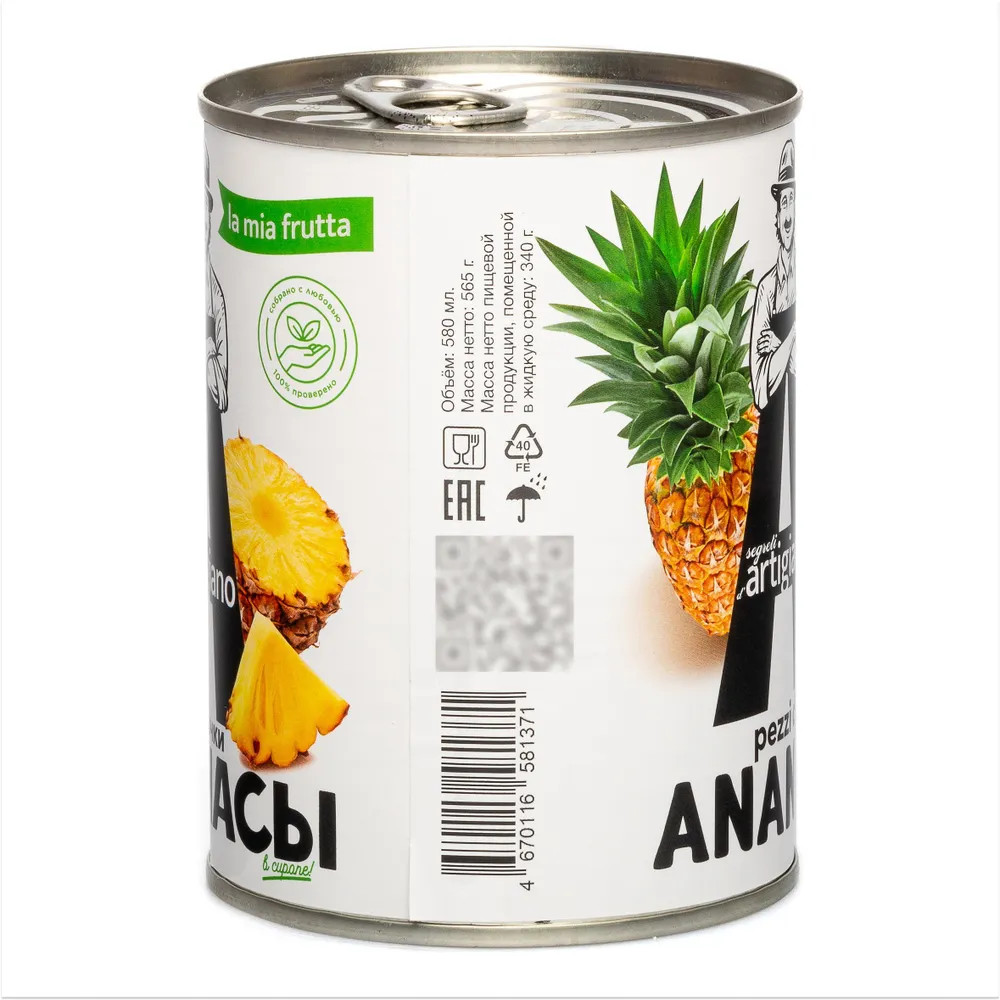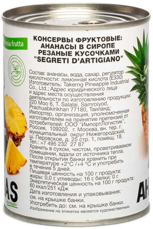 Segreti d’Artigiano Ананасы резаные кусочками в сиропе-25% +14