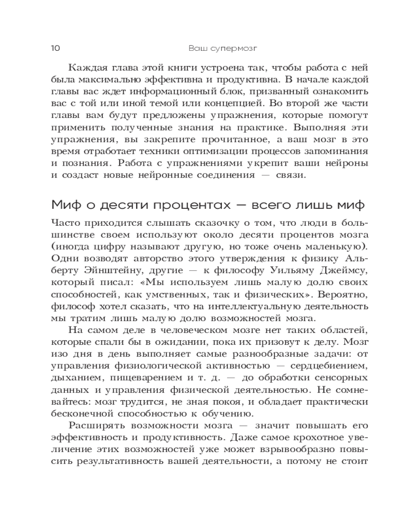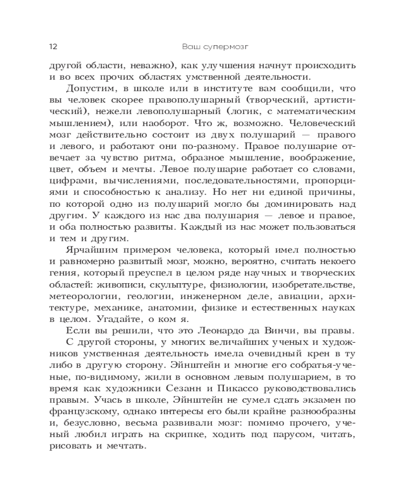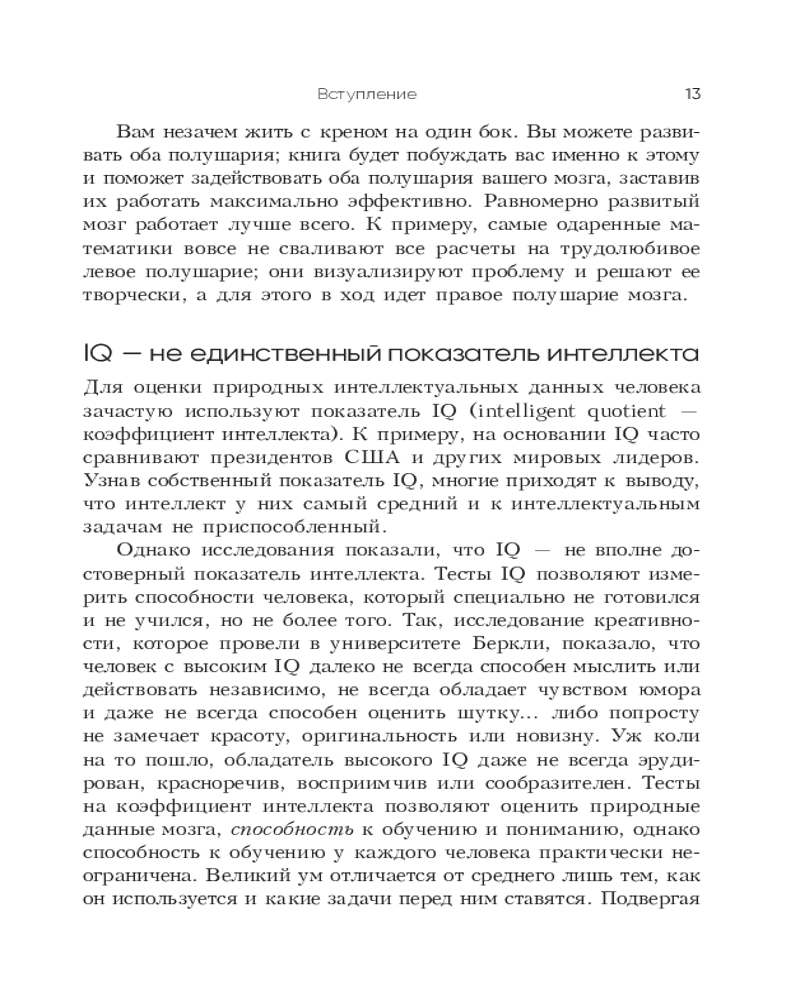 💳 Оплатить за товар можно при получении 🇰🇿 Есть бесплатная доставка по Казахстану от 1 дня 🎁 Копите бонусы с каждой покупки Серия: Психология Развивать свои умственные способности необходимо каждому, а особенно сегодня — технологии ускоряются день ото дня, и отставать от них ни в коем случае нельзя. К счастью, потенциал человеческого мозга практически безграничен. Надо лишь подобрать к нему ключ. Тони Бьюзен — настоящий гуру развития интеллекта. Он поможет вам раскрыть и задействовать все возможности вашего мозга. Книга представляет его авторские методики и техники, которые научат вас больше запоминать, мыслить четче и креативнее, решать сложные задачи, быстрее читать и эффективнее усваивать учебные материалы. А благодаря выполнению легких и увлекательных упражнений вы сами поразитесь, на что способен ваш уникальный мозг. |
