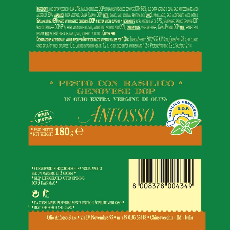 Anfosso Соус с базиликом на основе оливкового масла Pesto Genovese DOP «Генуэзский»